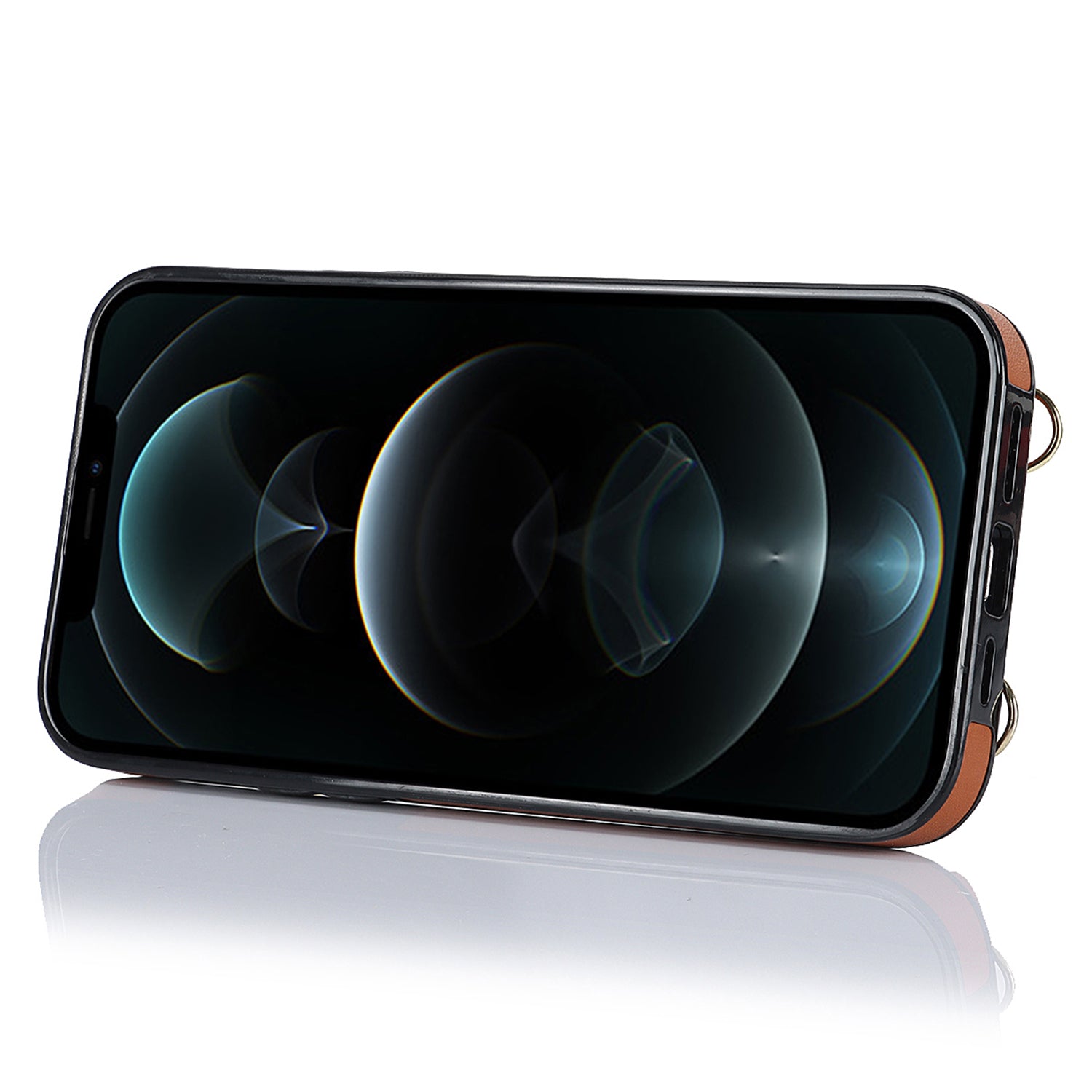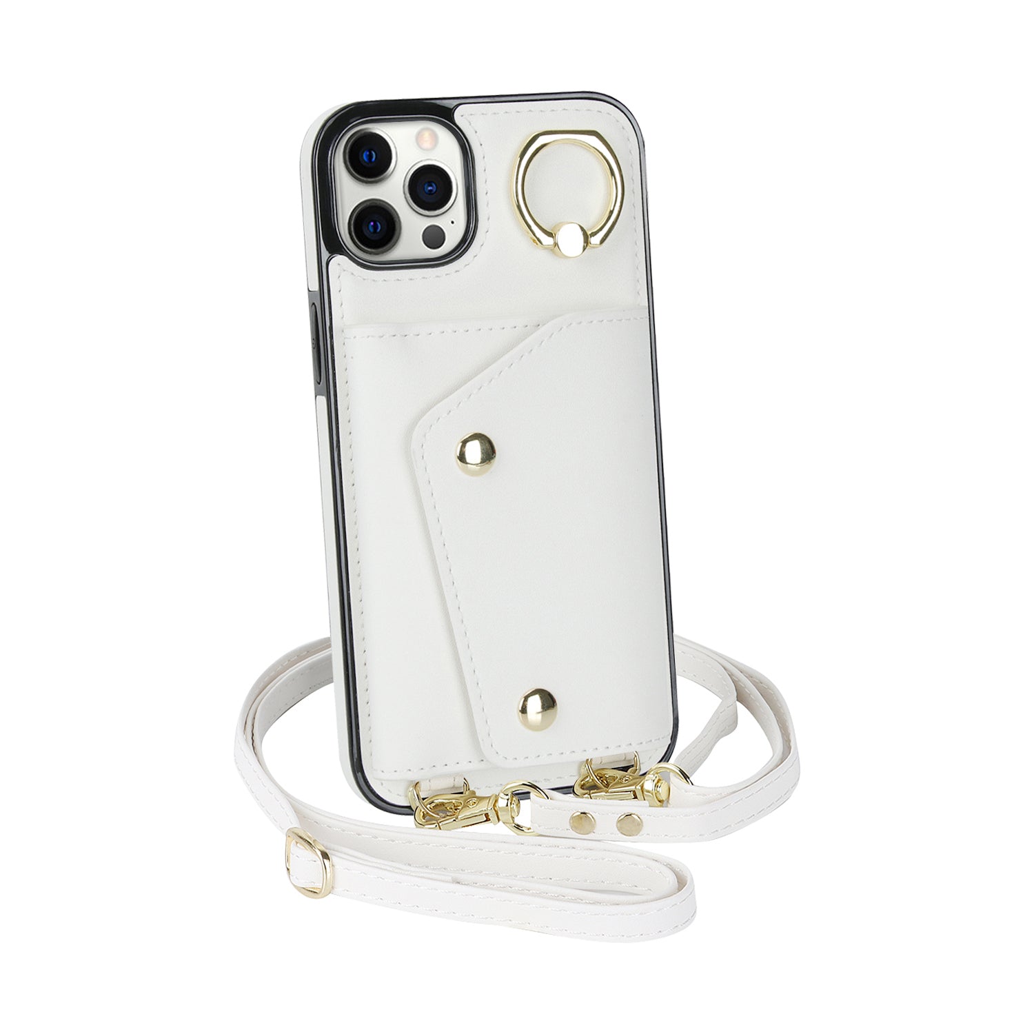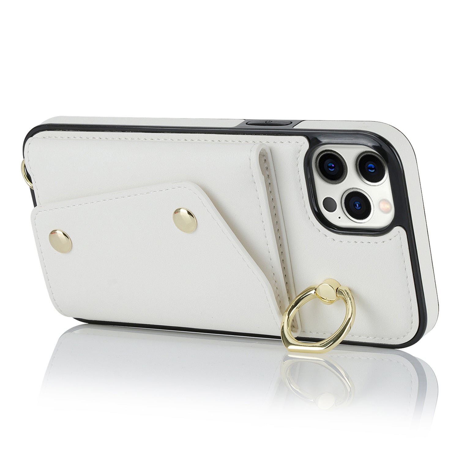 Phone Case with Zipper Wallet for iPhone 12 Pro Ring Kickstand PU Leather Coated TPU Back Cover