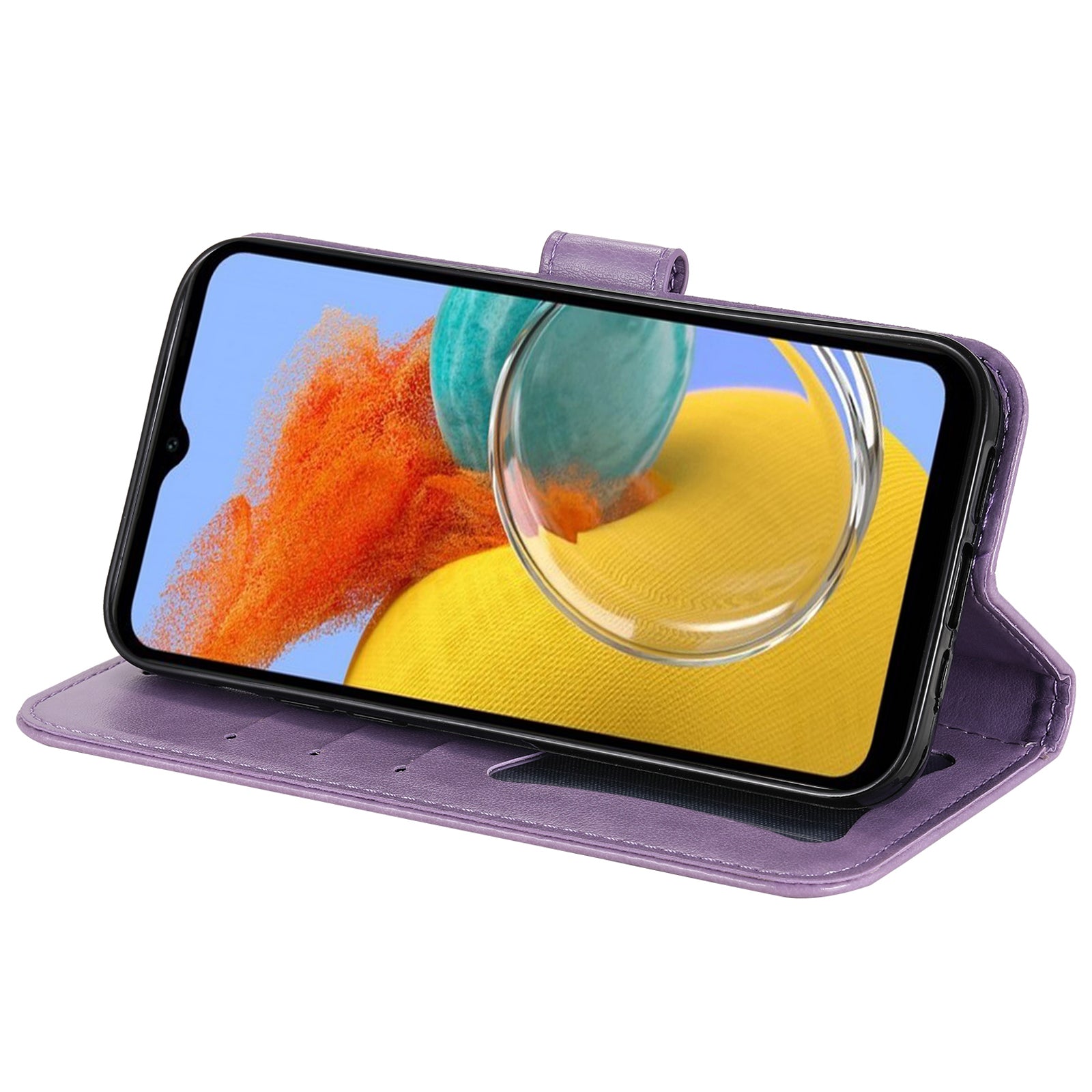 Phone Leather Case for Samsung Galaxy M14 5G Flower Imprinting Stand Wallet Shockproof Phone Cover