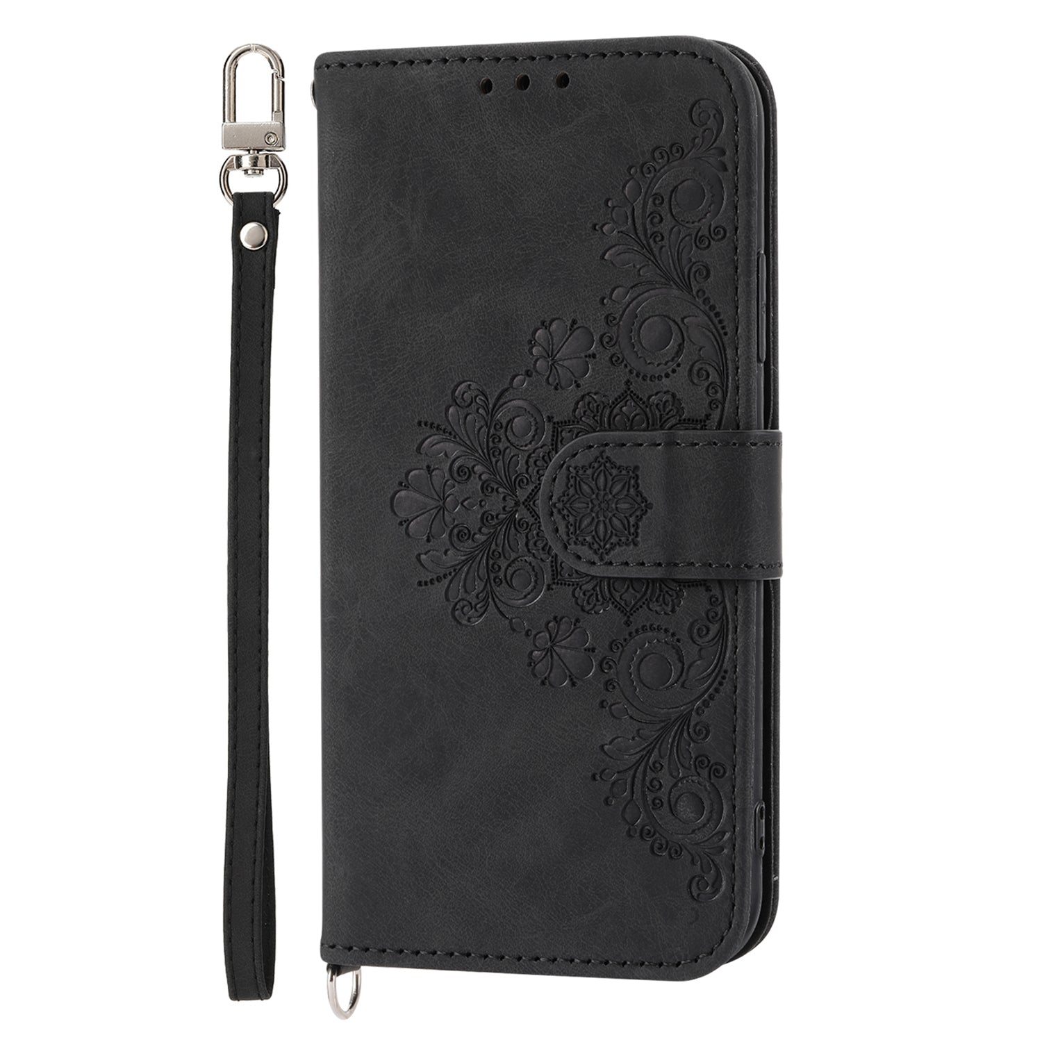 Protective Case for Realme 11 Pro 5G Imprinted Flower PU Leather Cover Skin-Touch Wallet Phone Shell with Strap
