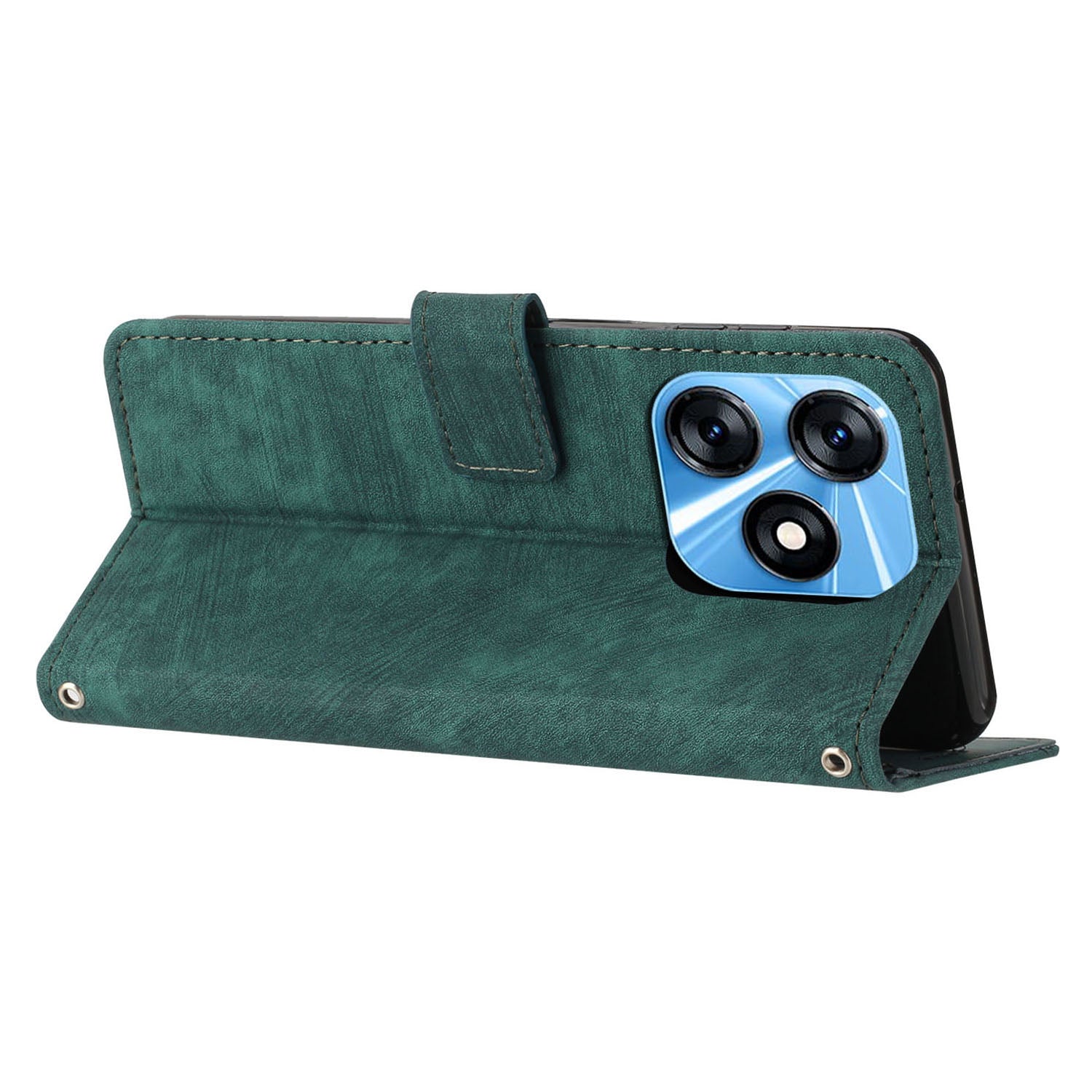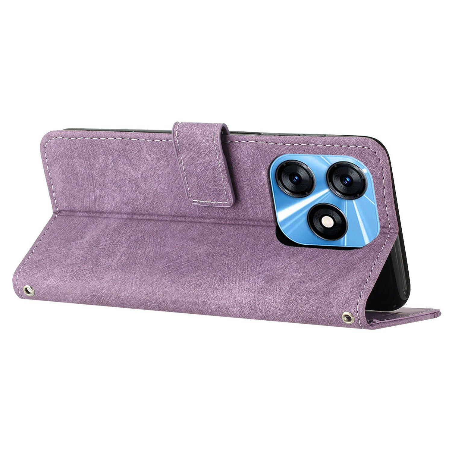Protective Case for Tecno Spark 10 4G Skin-touch Stand Imprinted Lines PU Leather Wallet Phone Cover