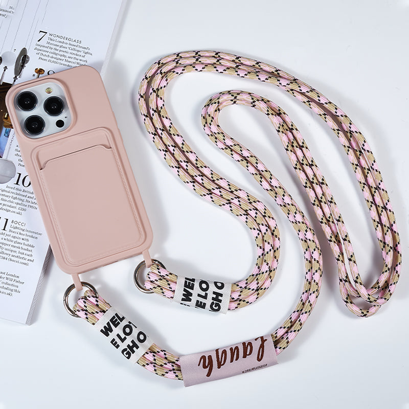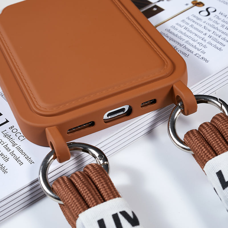 Protective Cover for iPhone 13 Pro 6.1 inch Case Anti-Fall Liquid Silicone Phone Shell with Card Slot, Strap