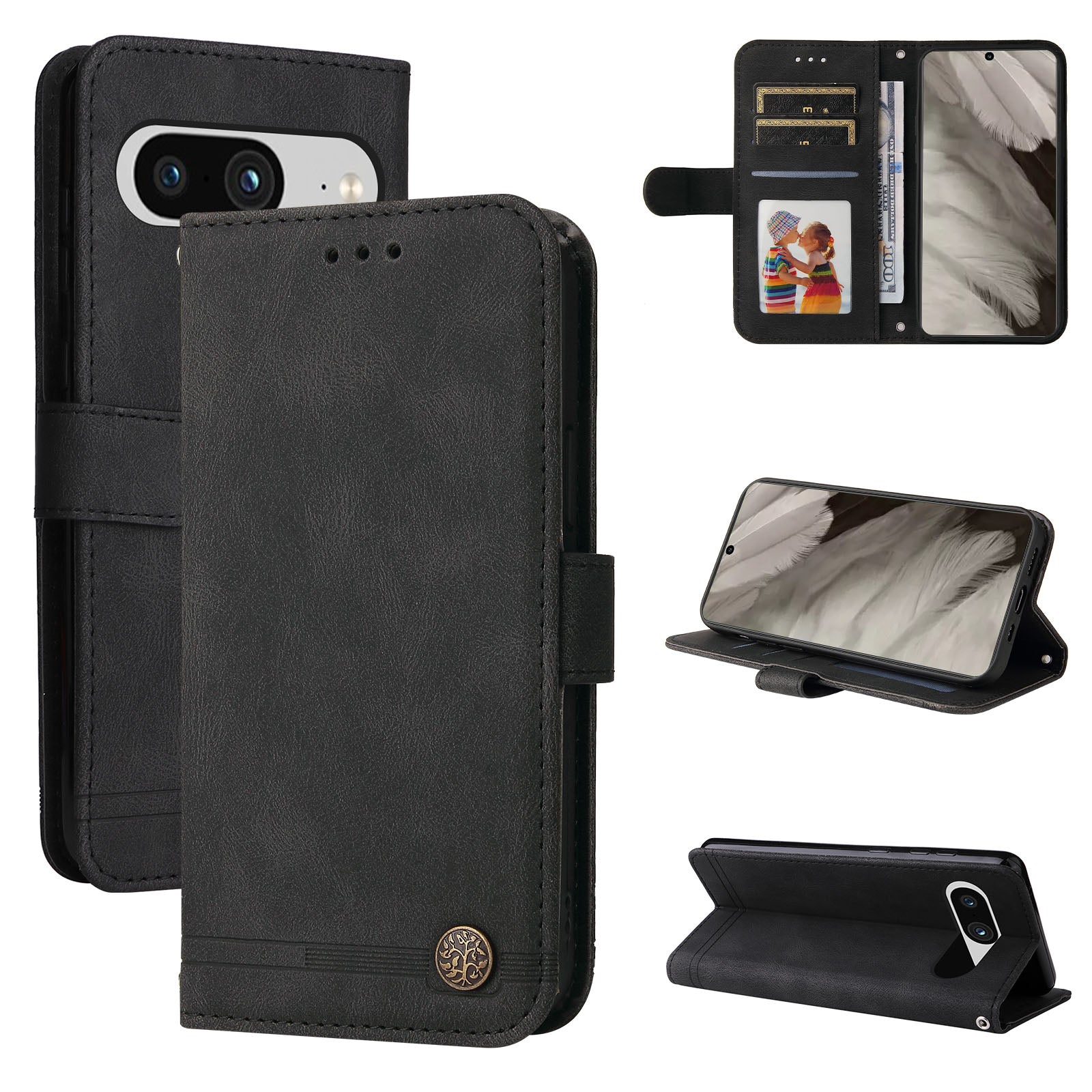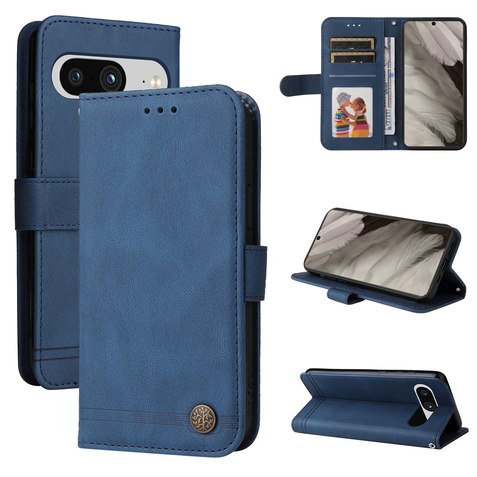 Protective Phone Cover for Google Pixel 8 , Imprinted Lines Stand Skin-touch Wallet PU Leather Case