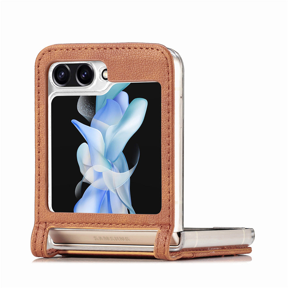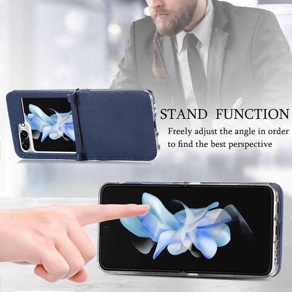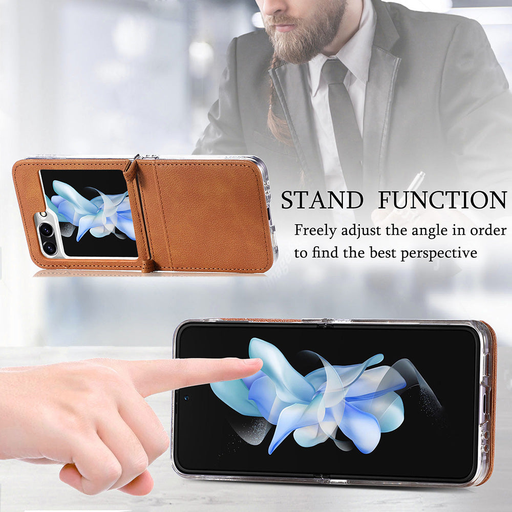 Protective Slim Case for Samsung Galaxy Z Flip5 5G Litchi Texture Card Holder PU Leather PC Phone Cover