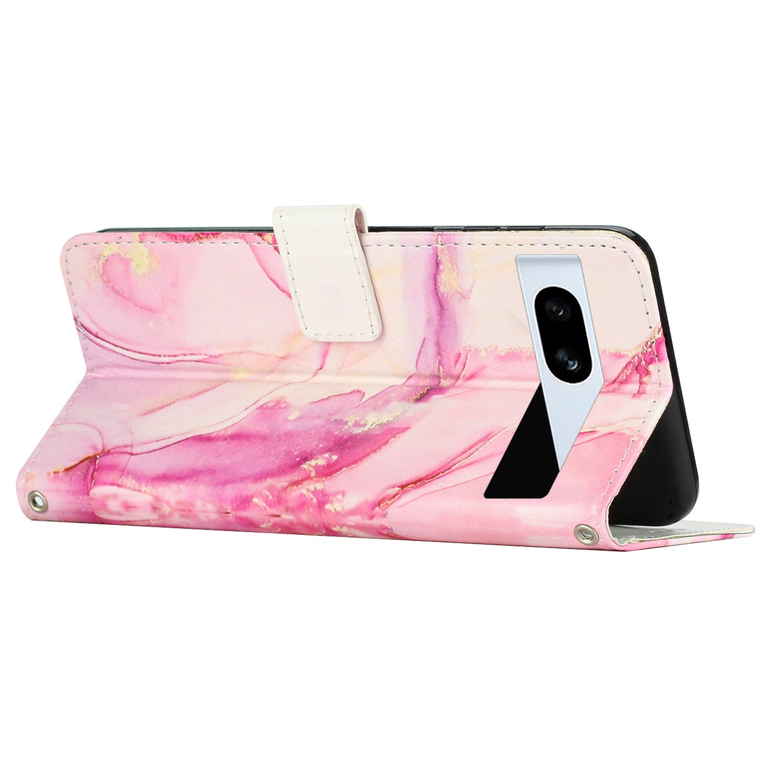 PU Leather Cellphone Case for Google Pixel 7a Marble Pattern Wallet Stand Cover with Wrist Strap