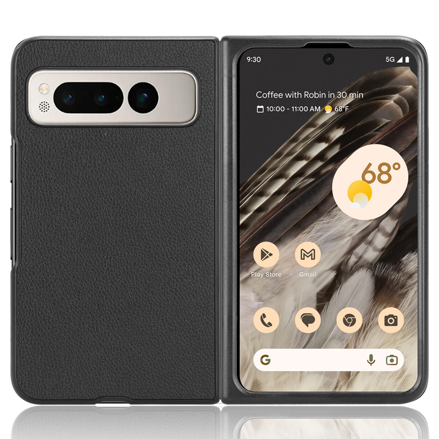 PU Leather Coated PC Case for Google Pixel Fold Litchi Texture Folding Phone Protective Cover