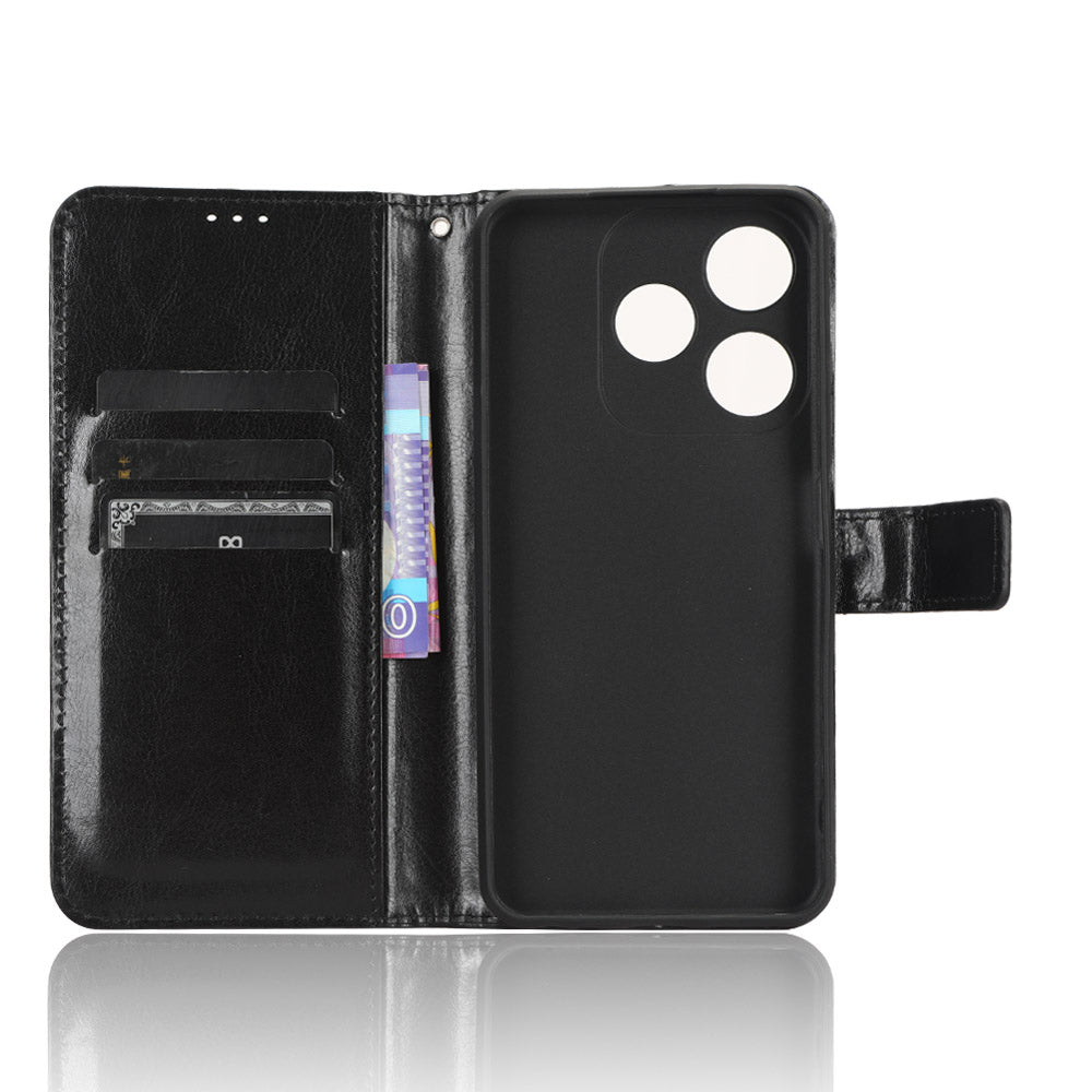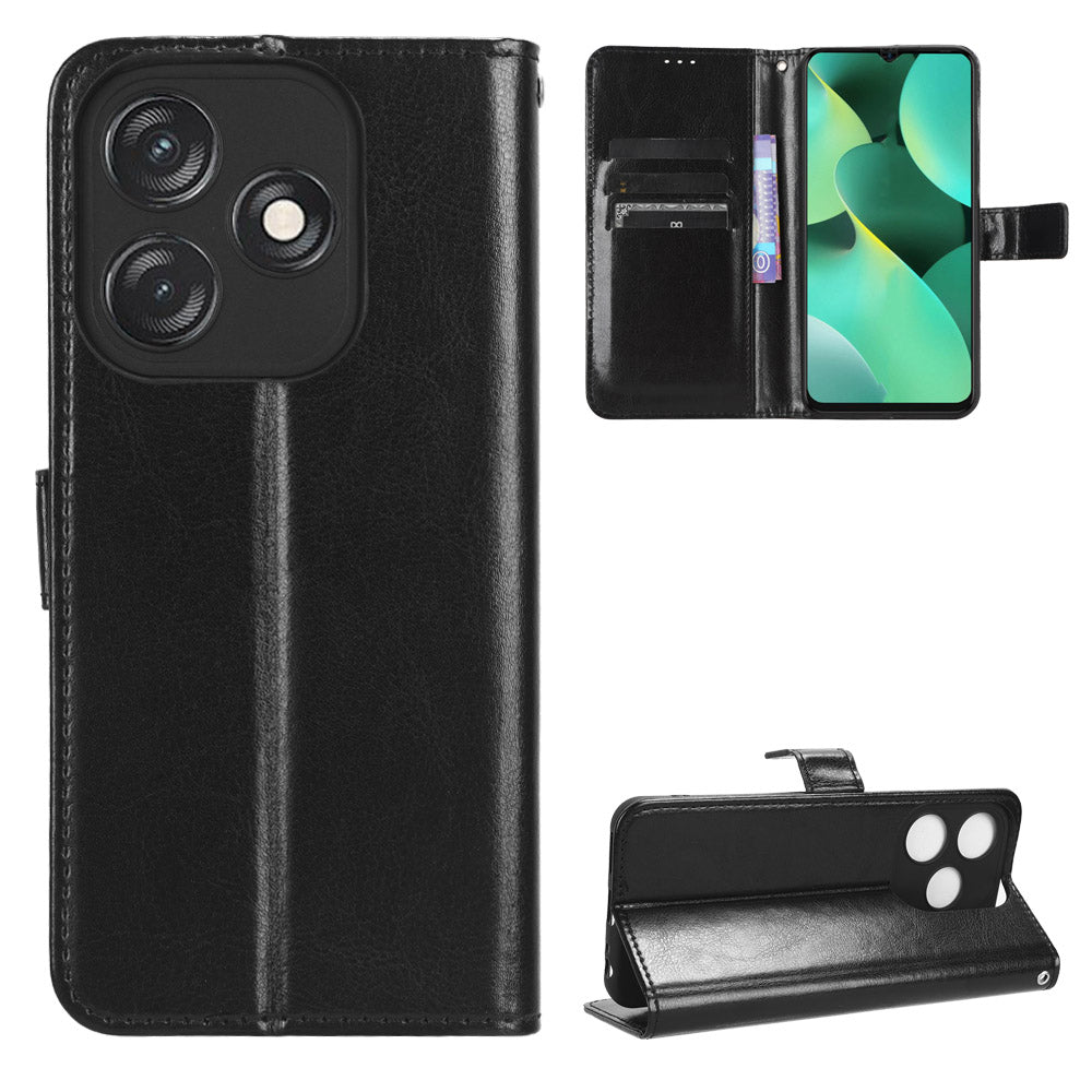 PU Leather Flip Cover for Tecno Spark 10C 4G Anti-Dorp Wallet Case Crazy Horse Texture Stand Phone Shell