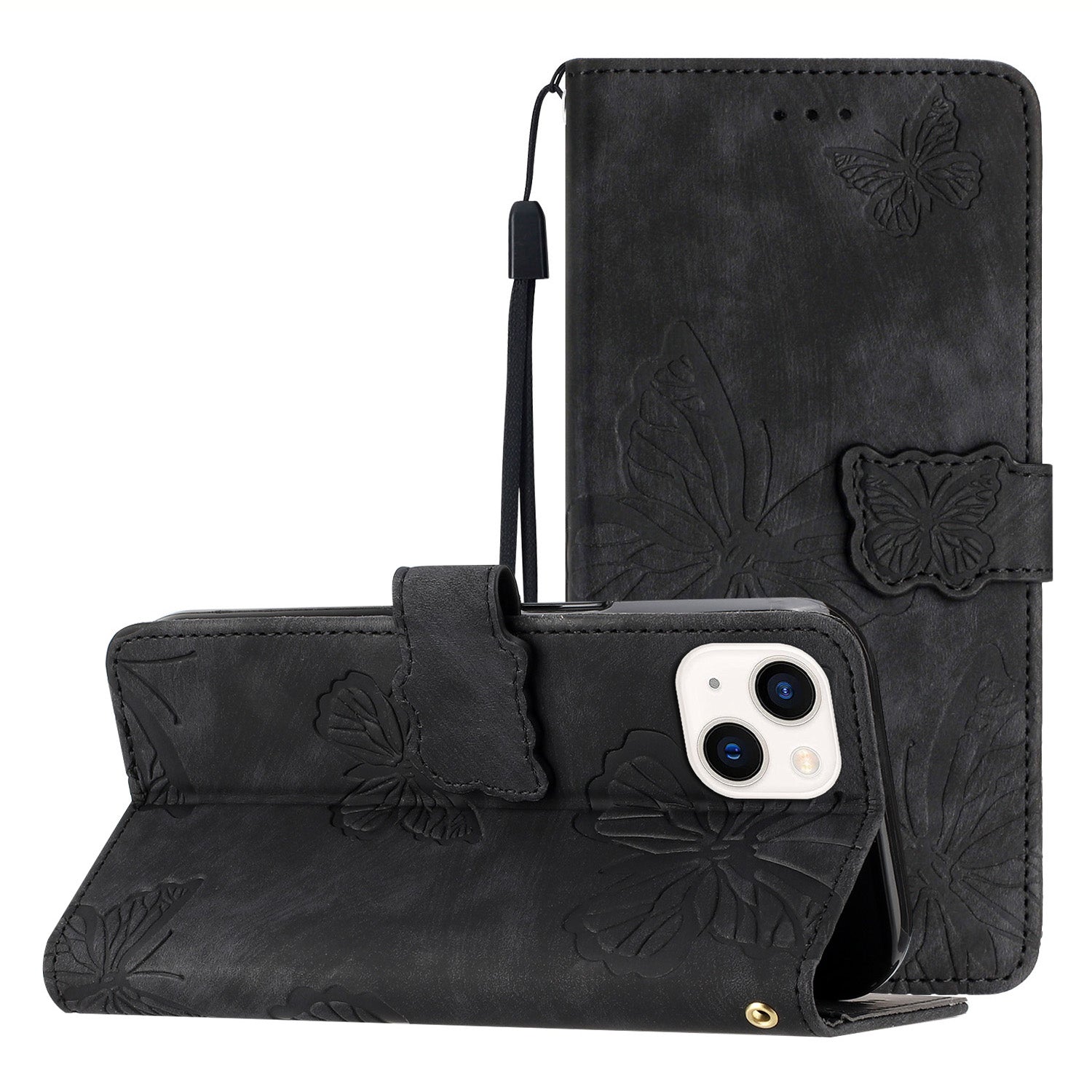 PU Leather Shell for iPhone 13 mini 5.4 inch Stand Wallet Case Butterfly Imprinted Skin-touch Phone Cover