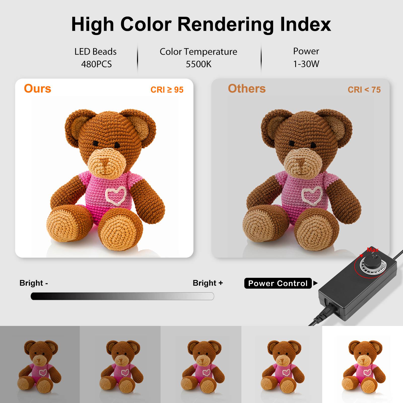 - Positive white temperature: 5500K