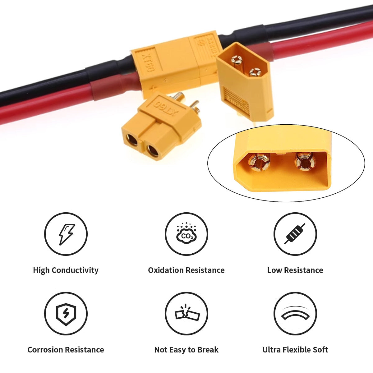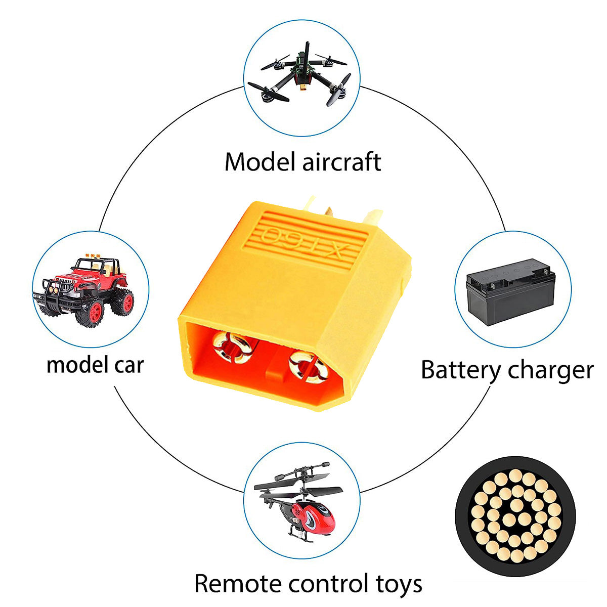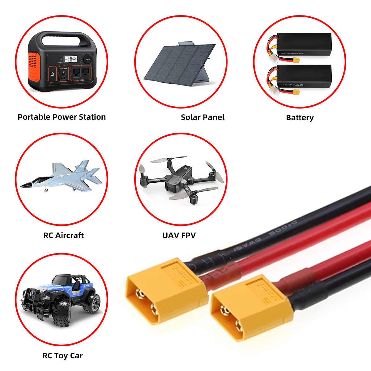 - XT60 extension cable is easily compatible with connecting and disconnecting most battery packs that are applied in portable power stations, remote control toy cars, UAVs, RC battery