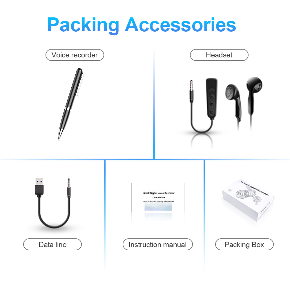 - Intelligent voice-activated recording: Sound: more than 30 decibels will be recorded, silent: or less than 30 decibels will not record
