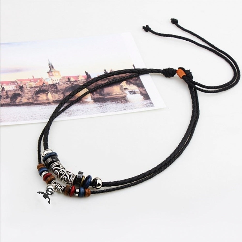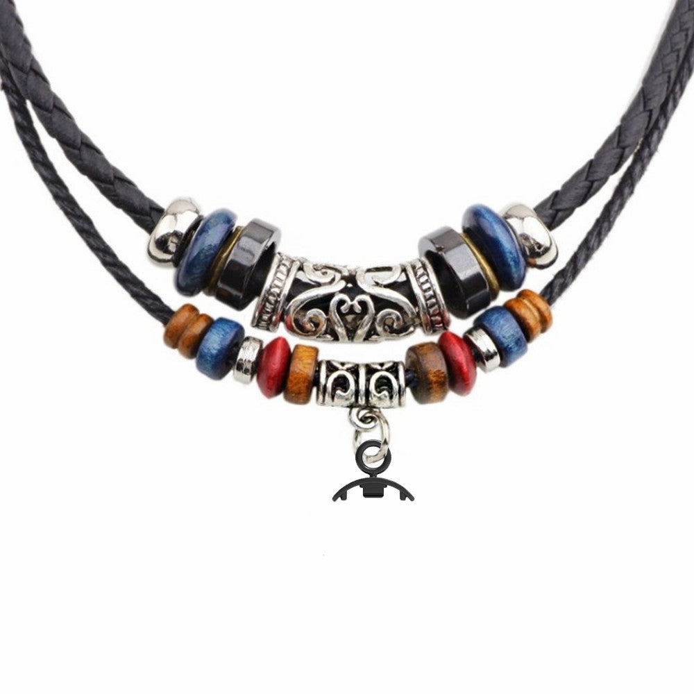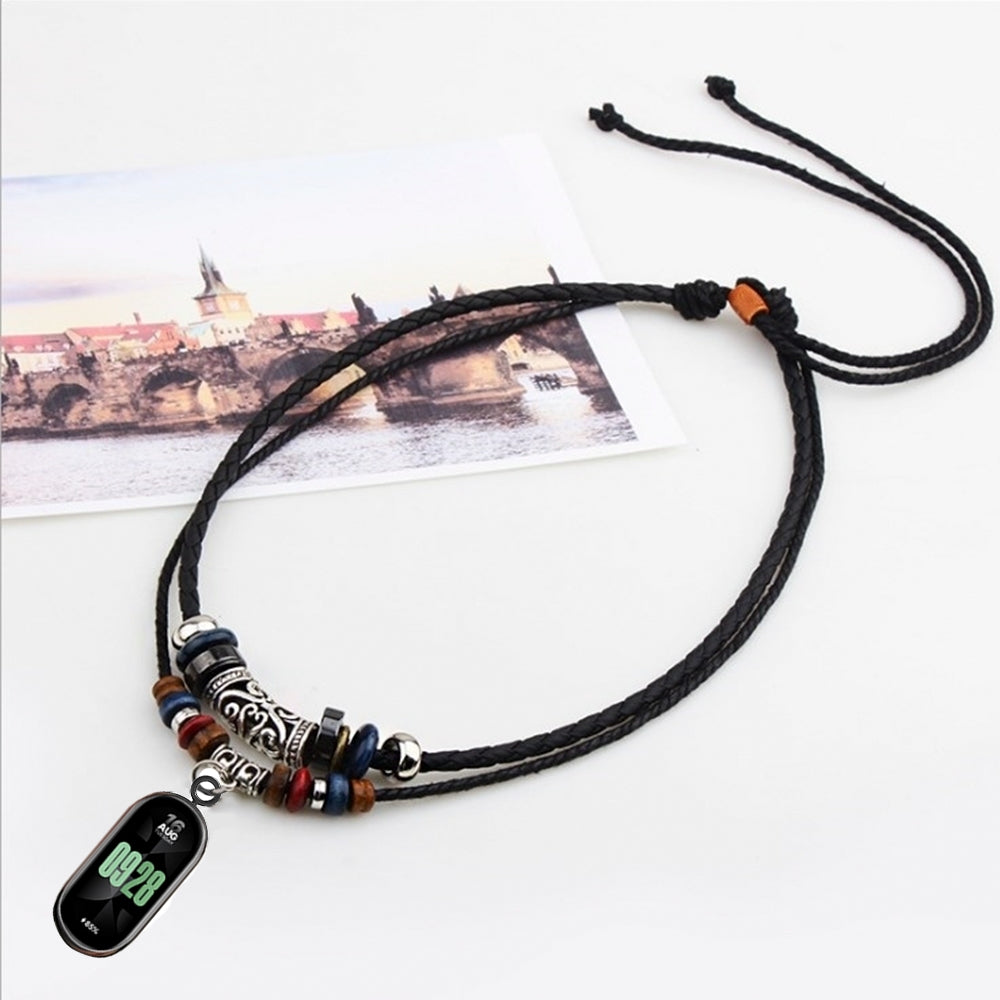 Retro Neck Strap for Xiaomi Smart Band 8 , Dual Layer Beads Decor Braided Leather Watch Necklace Lanyard