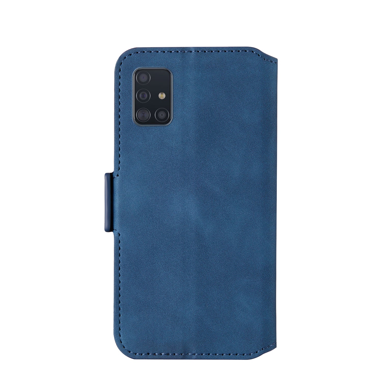 Retro Style Splicing Matte Leather Case with Card Holder for Samsung Galaxy A51 - Blue