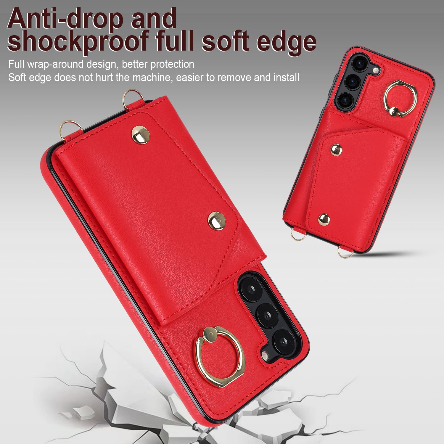 Ring Kickstand Phone Case for Samsung Galaxy S23 Zipper Wallet PU Leather Coated TPU Back Cover
