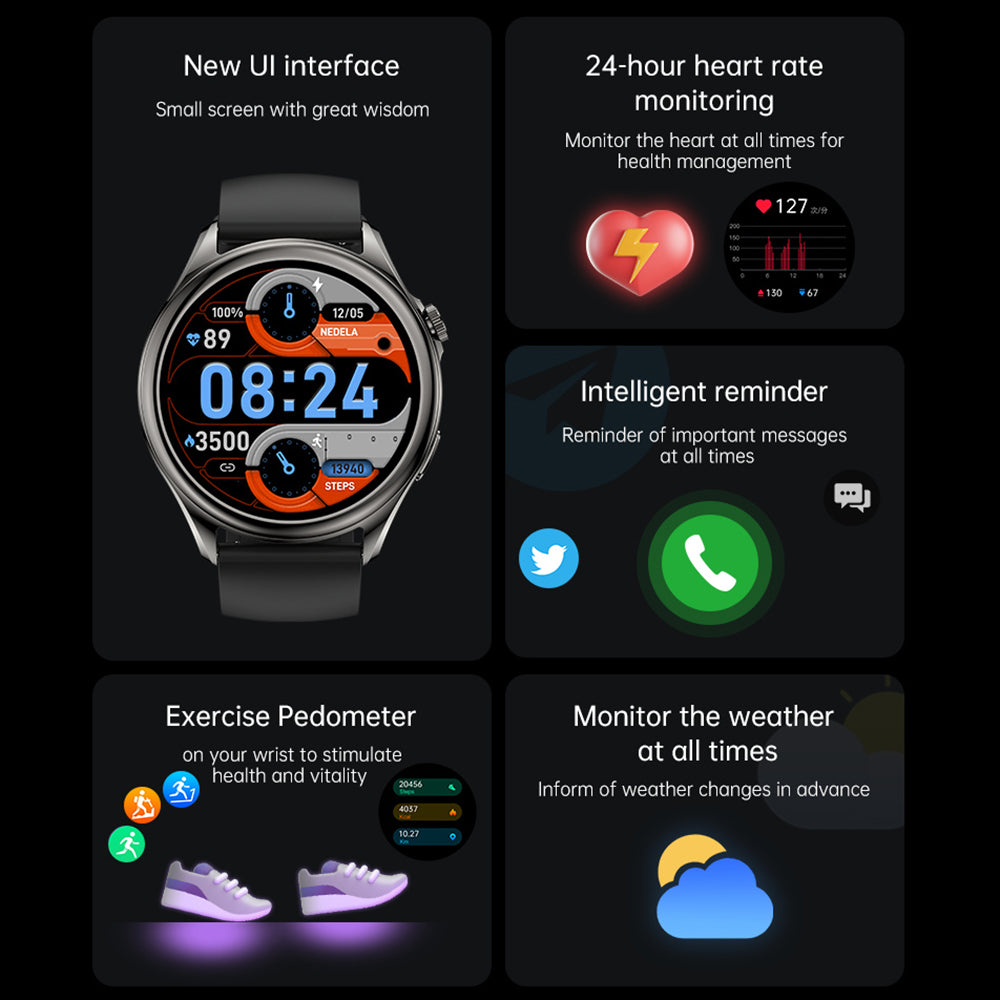 - 1.39-inch high-definition full-touch round screen, providing ultra-clear and vivid visual experience