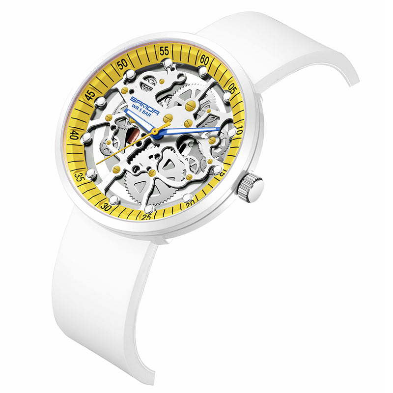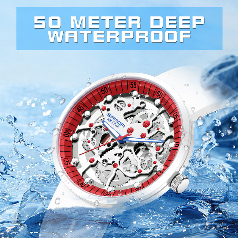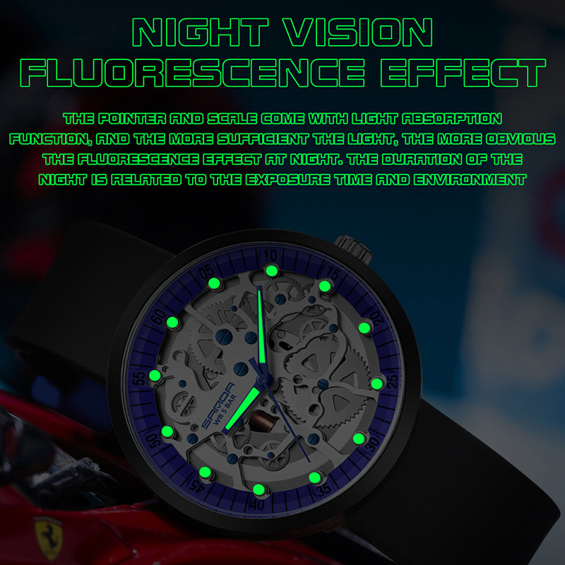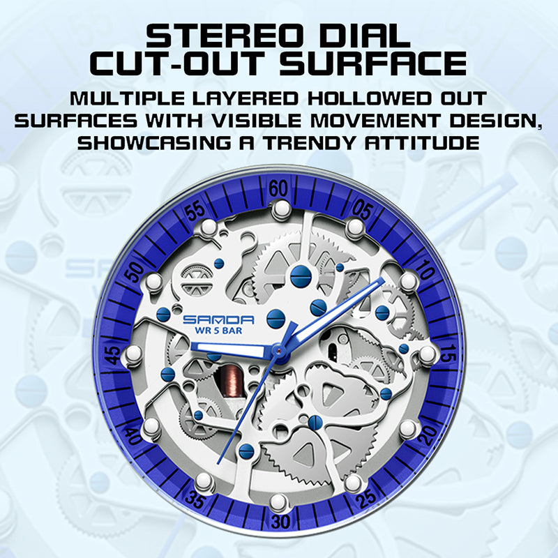 - Multi-layer gear hollow structure, combined with tempered glass surface, visible movement design