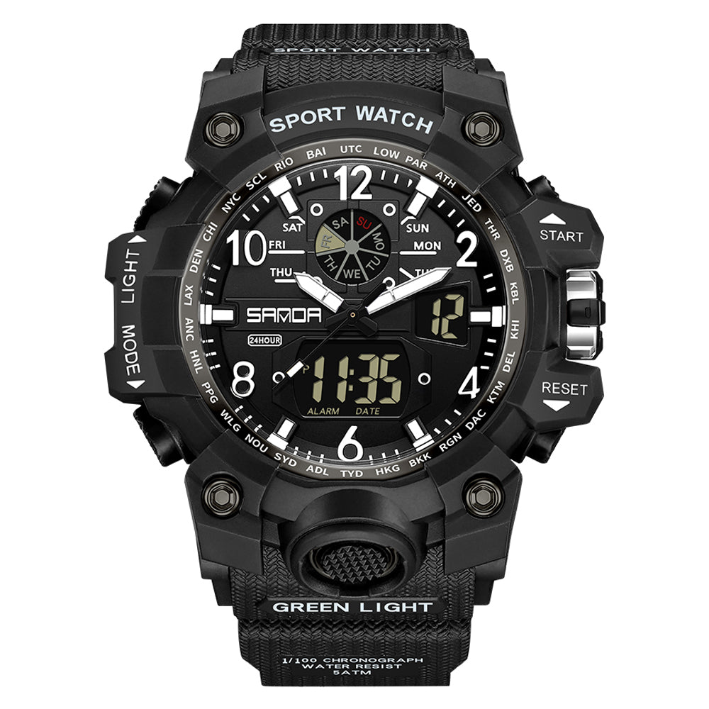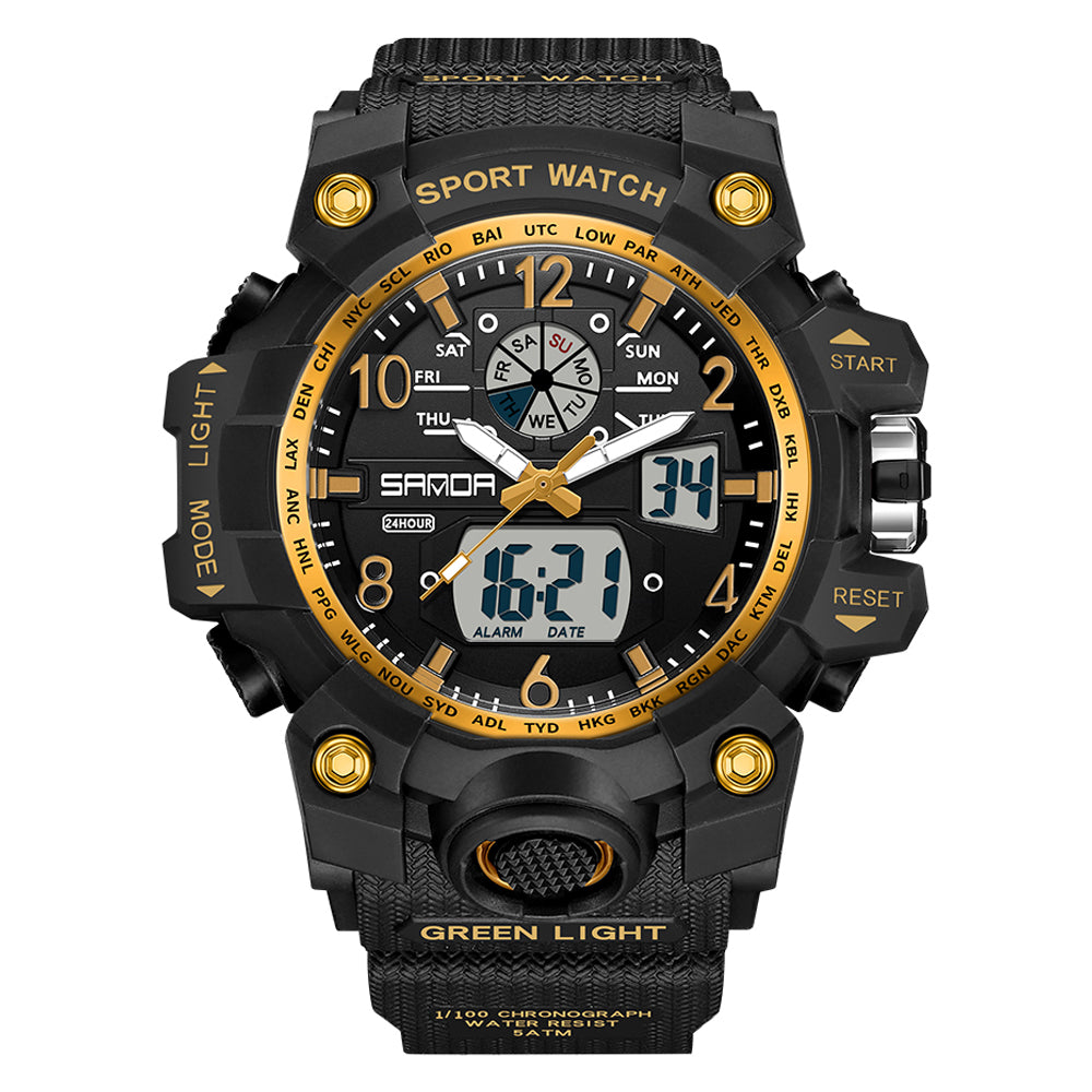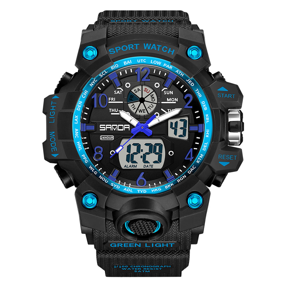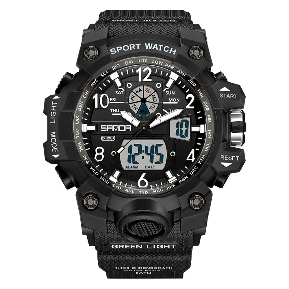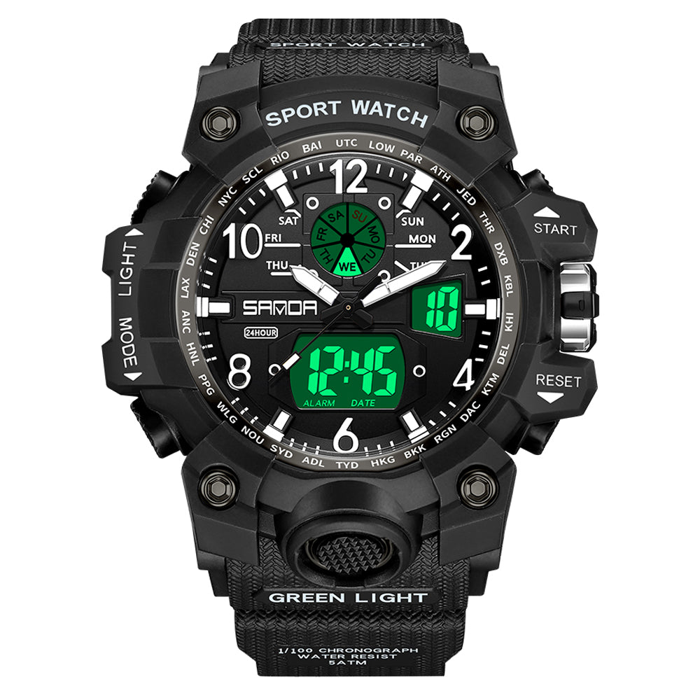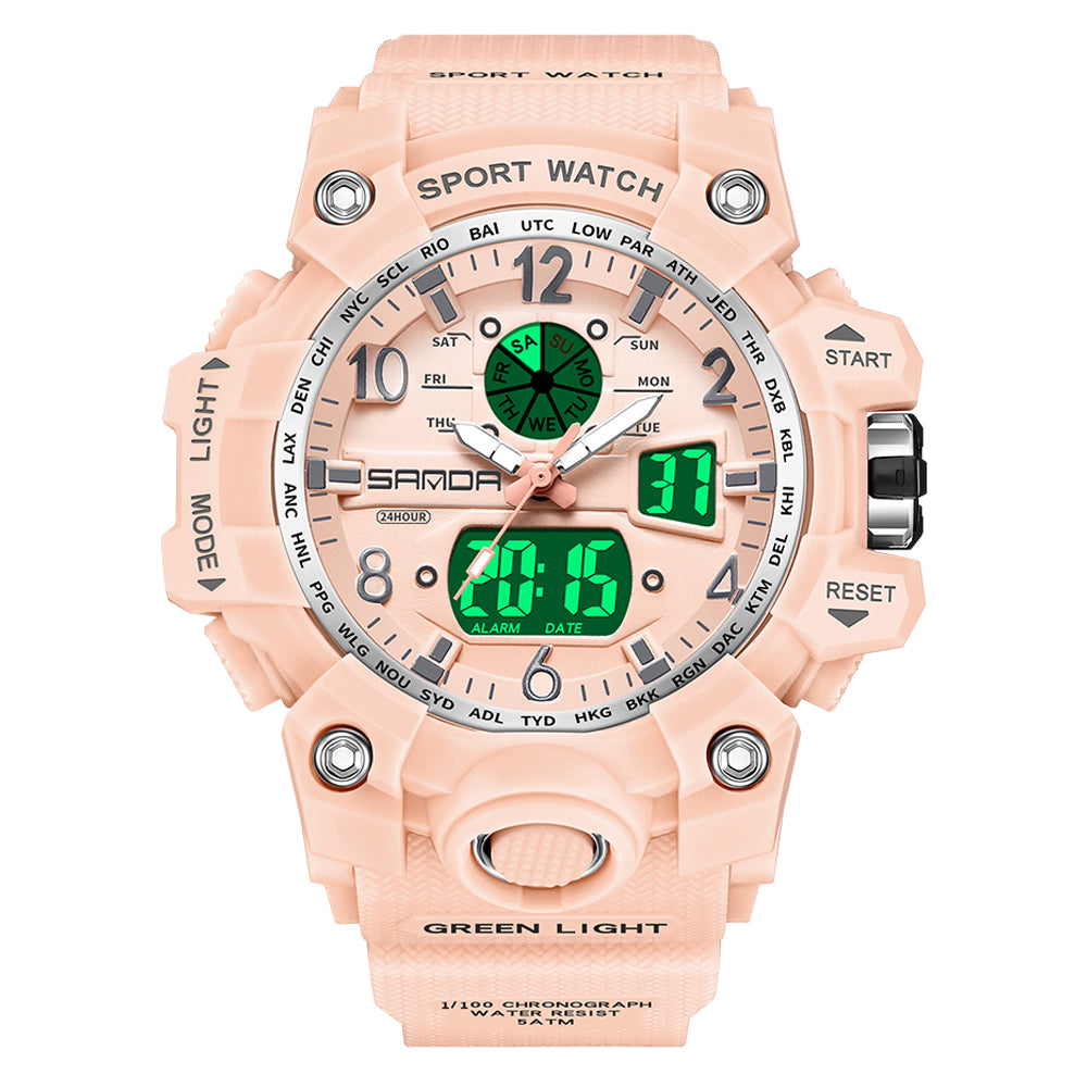 SANDA 3306 Luminous Display Leisure Electronic Watch 50m Waterproof Sports Watch with Alarm Clock, Weekly Calendar