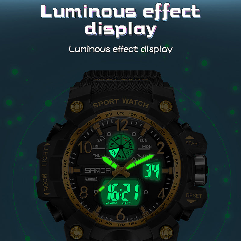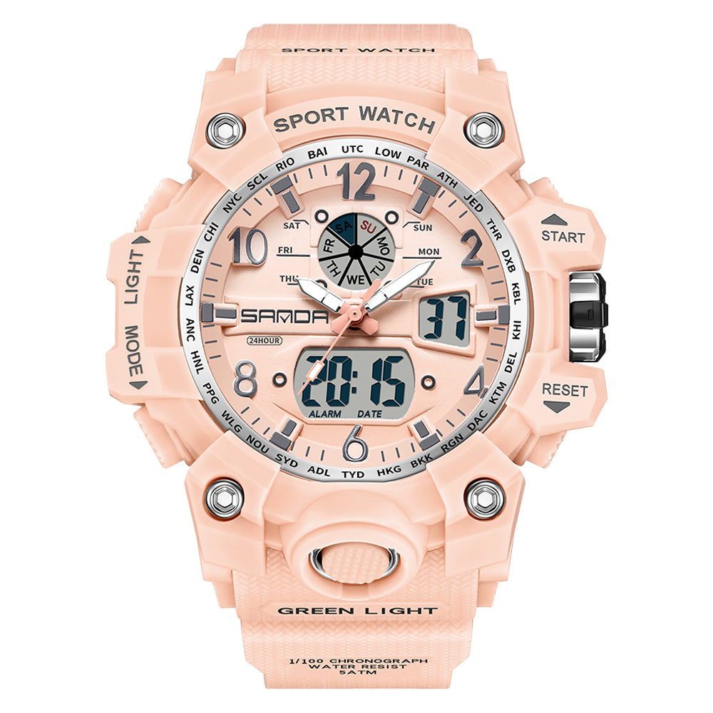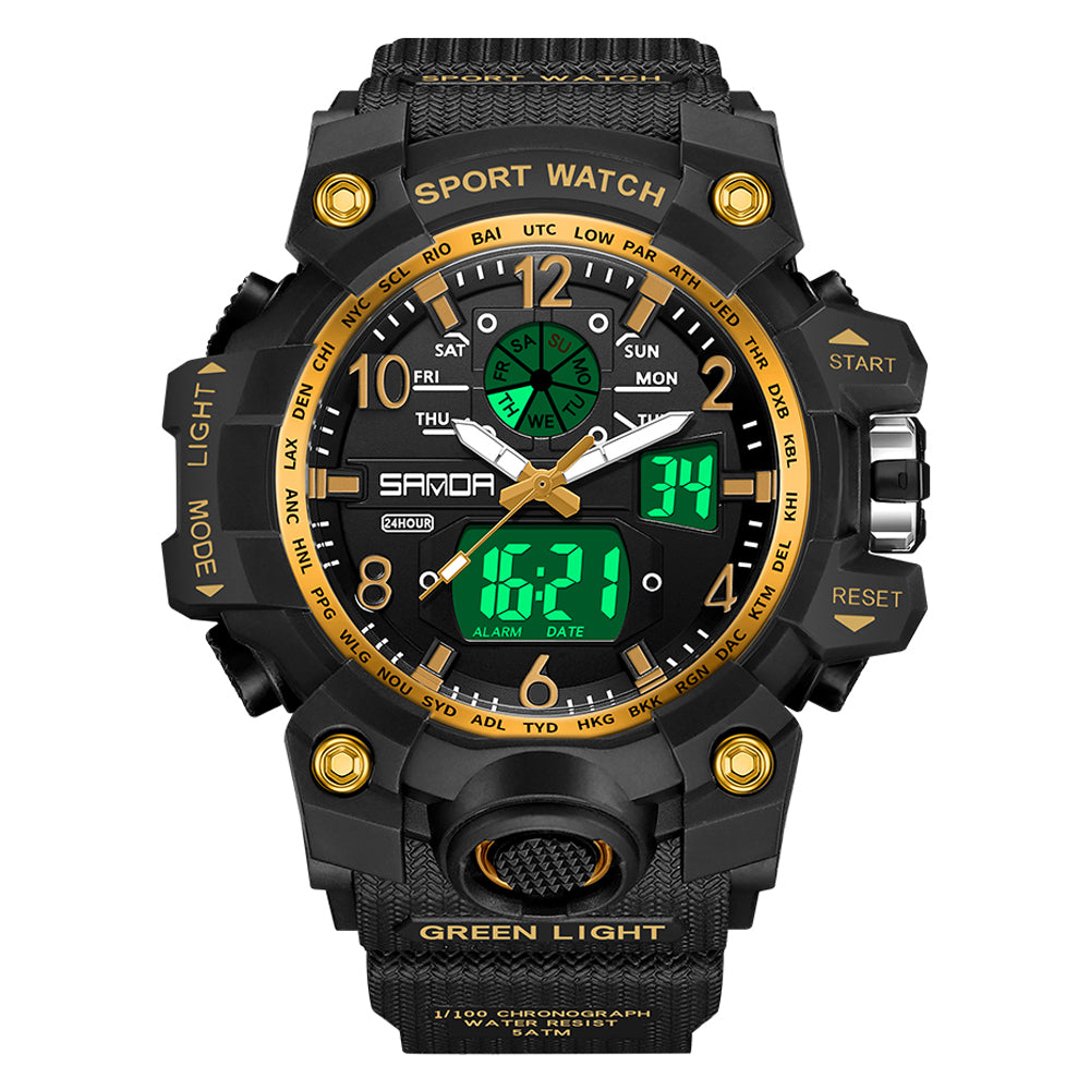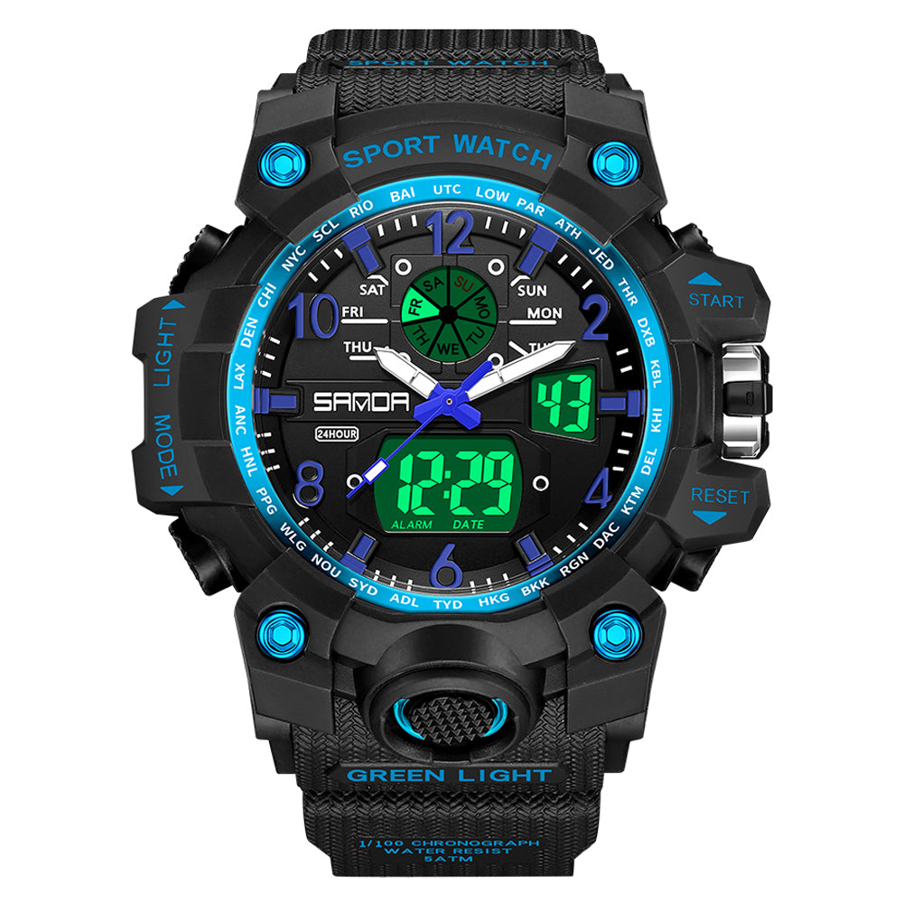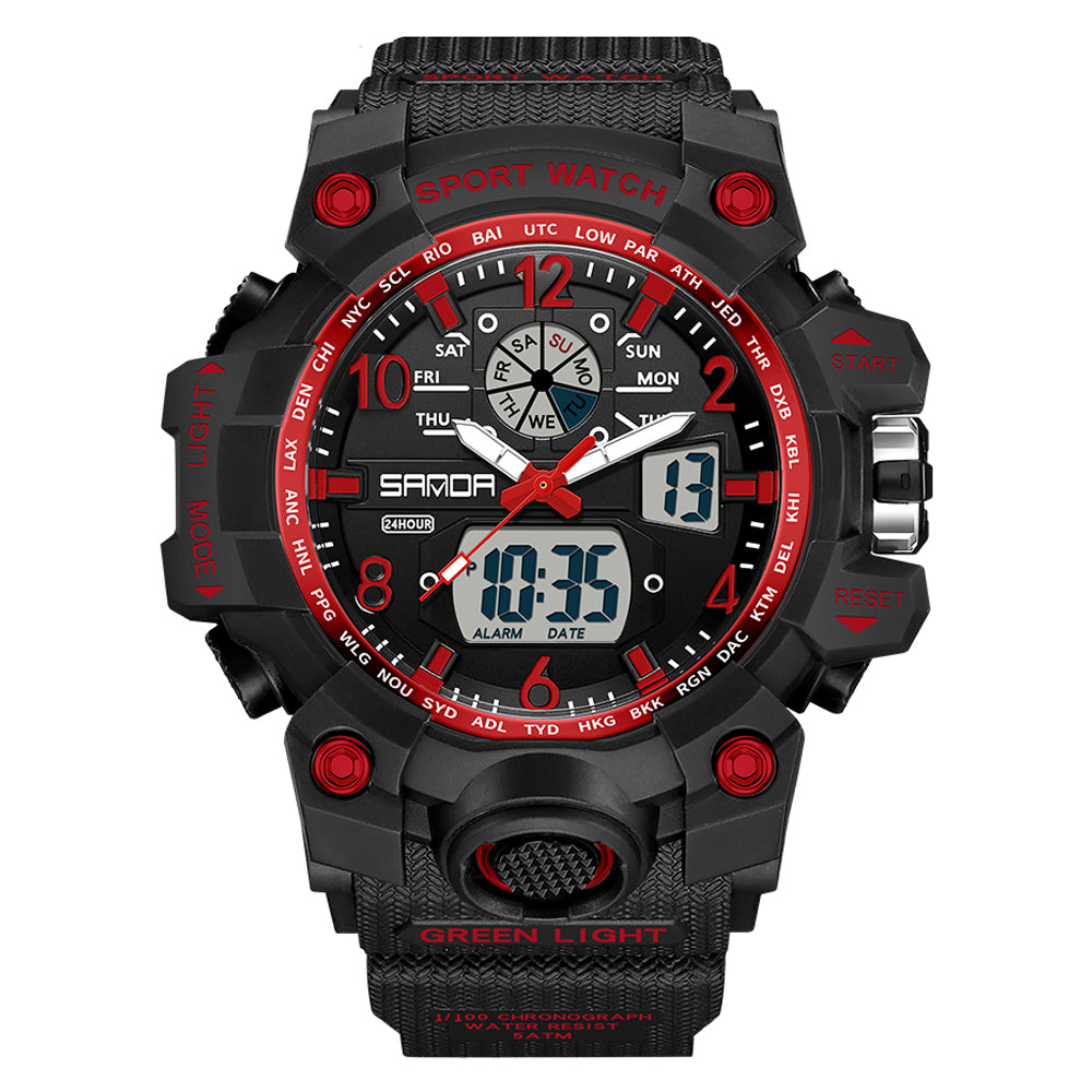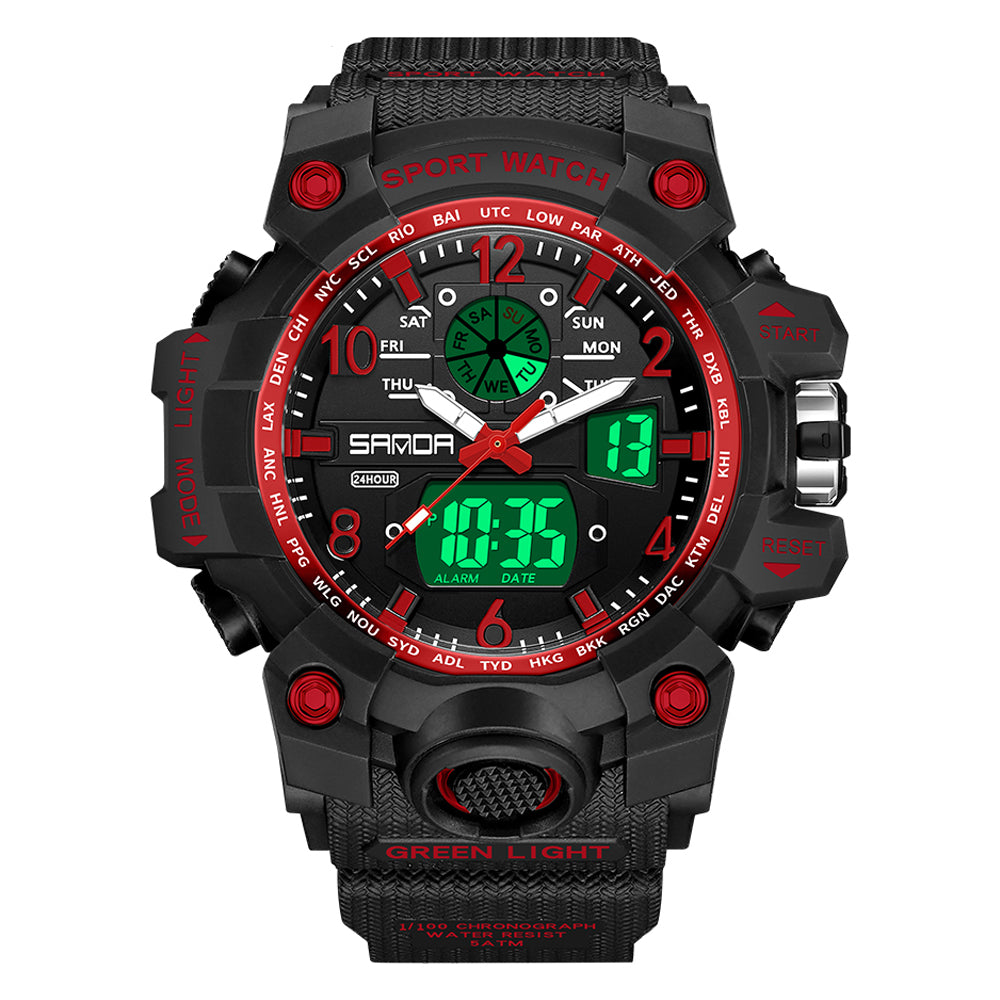 SANDA 3306 Luminous Display Leisure Electronic Watch 50m Waterproof Sports Watch with Alarm Clock, Weekly Calendar