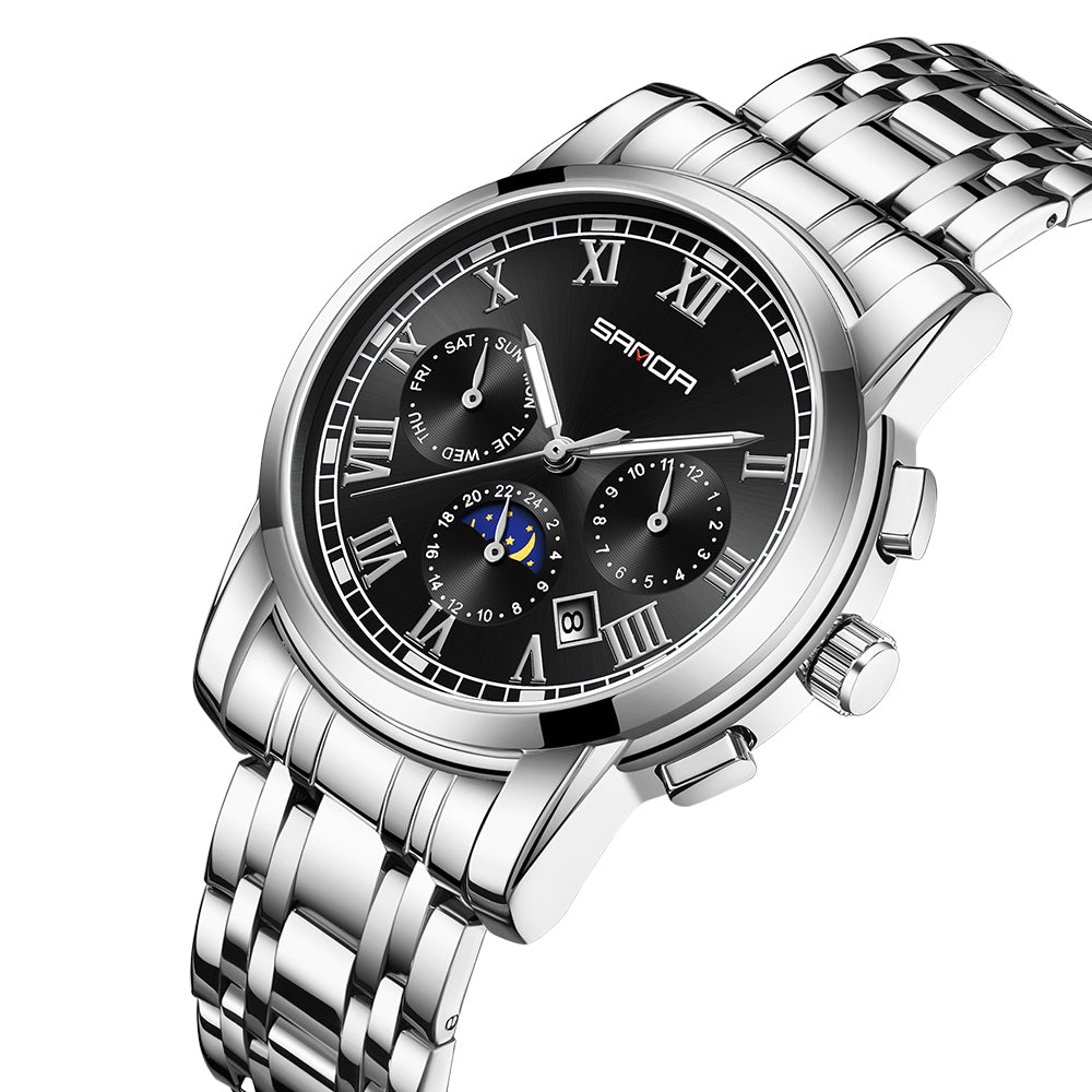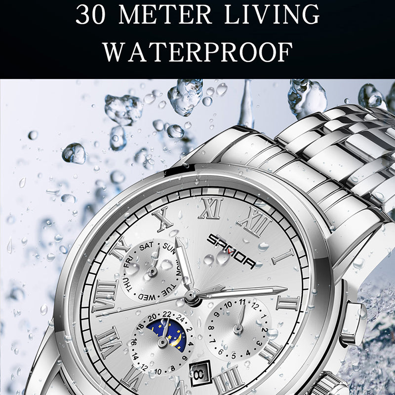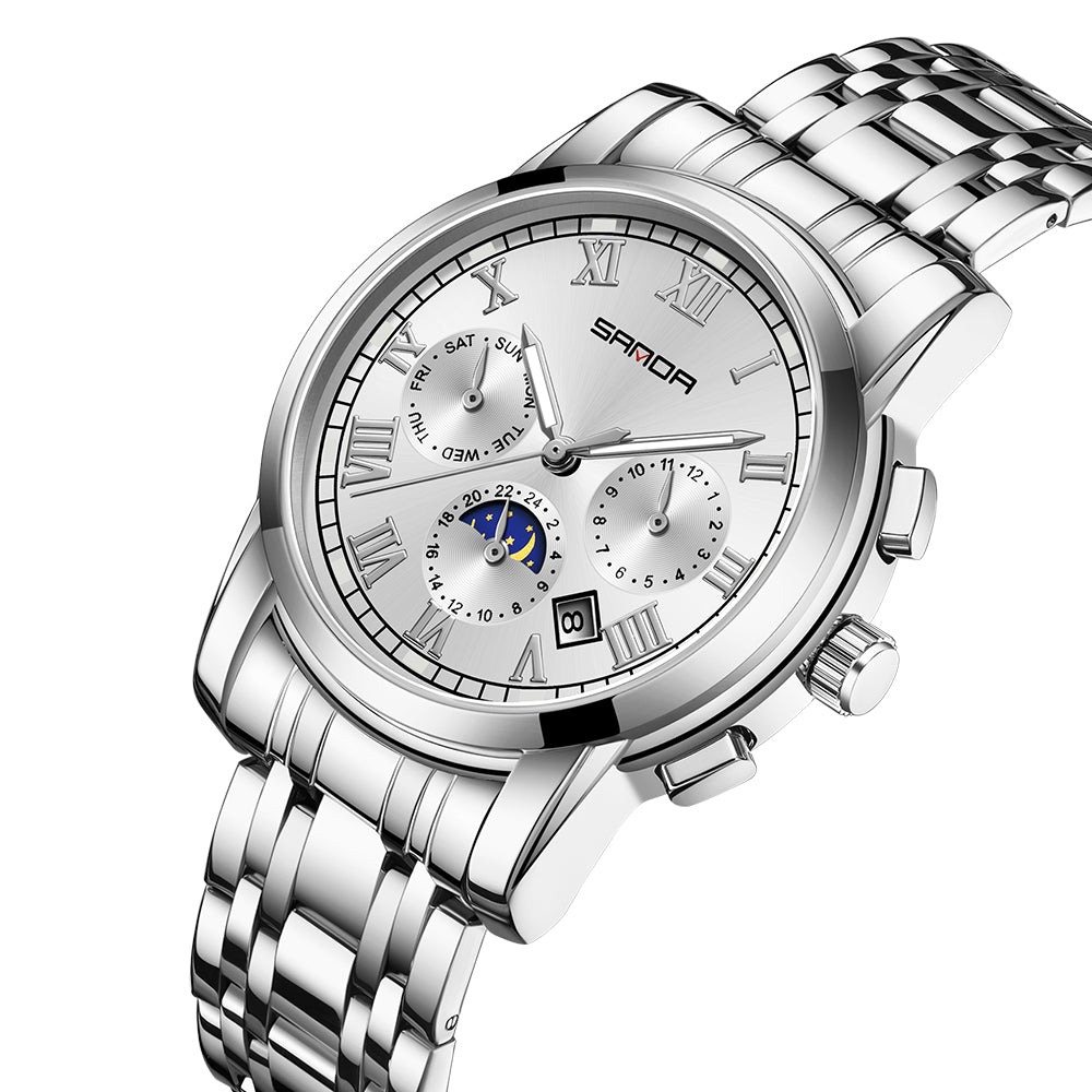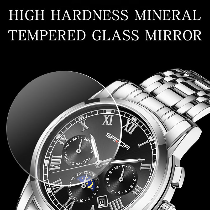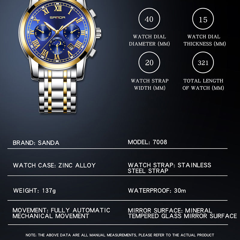 SANDA 7006 Fashion Wrist Watch Mechanical Analog Watch with Stainless Steel Strap