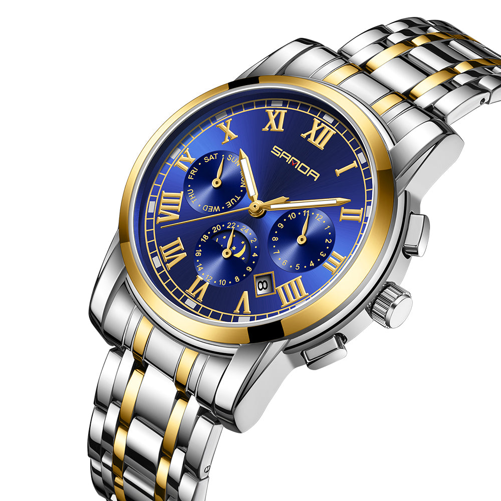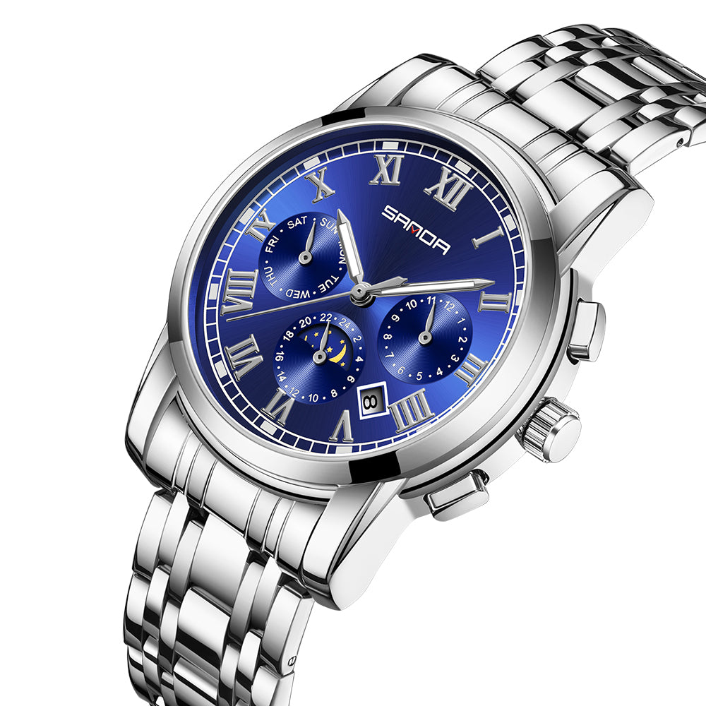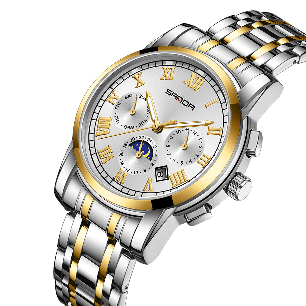 SANDA 7006 Fashion Wrist Watch Mechanical Analog Watch with Stainless Steel Strap