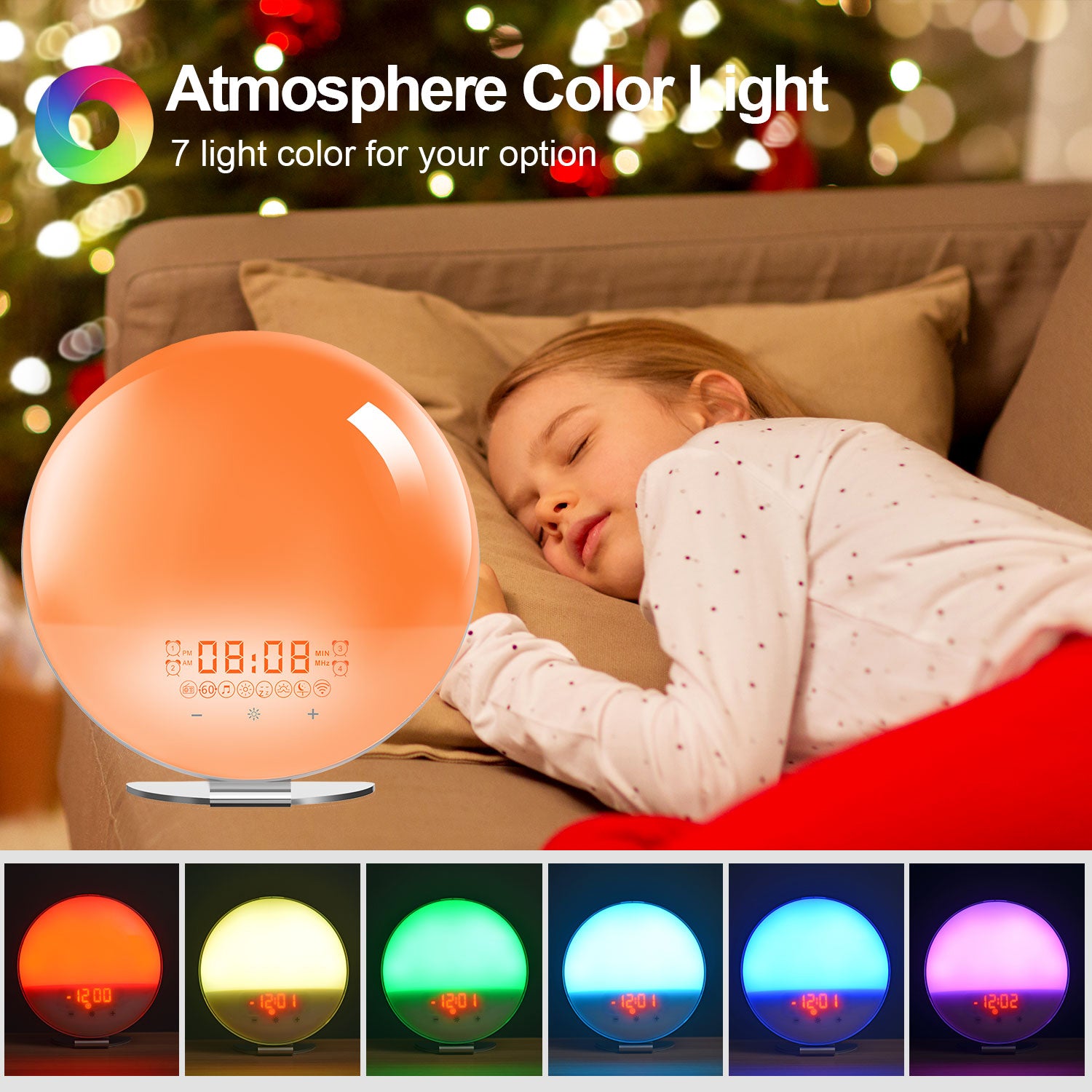 - Sleep-aid function: simulated sunset light to help sleep; music to help sleep, built-in 8 kinds of white noise natural music, you can also choose FM radio audio channel as sleep-accompanying music