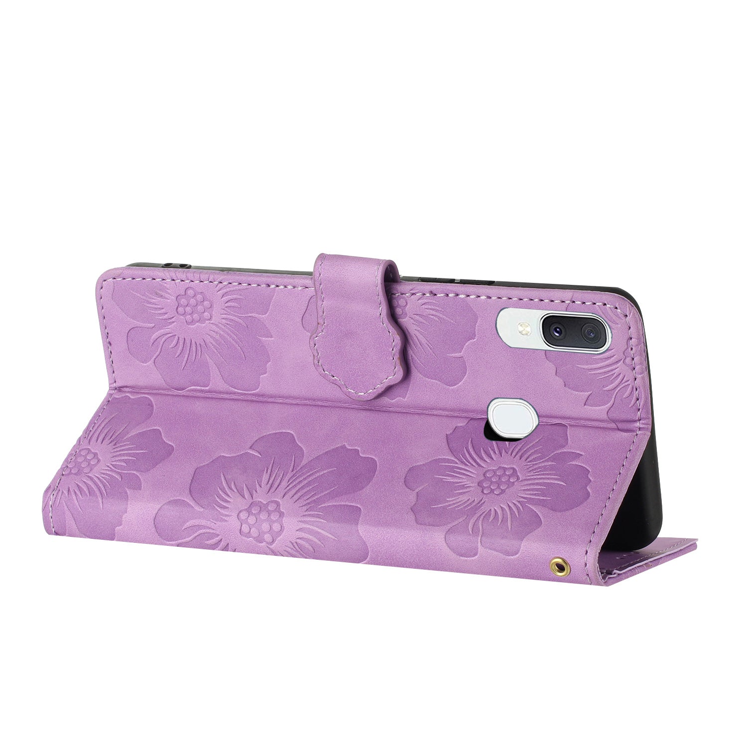 Shockproof Cover for Samsung Galaxy A40 Flowers Imprinted Stand Phone Wallet Leather Case