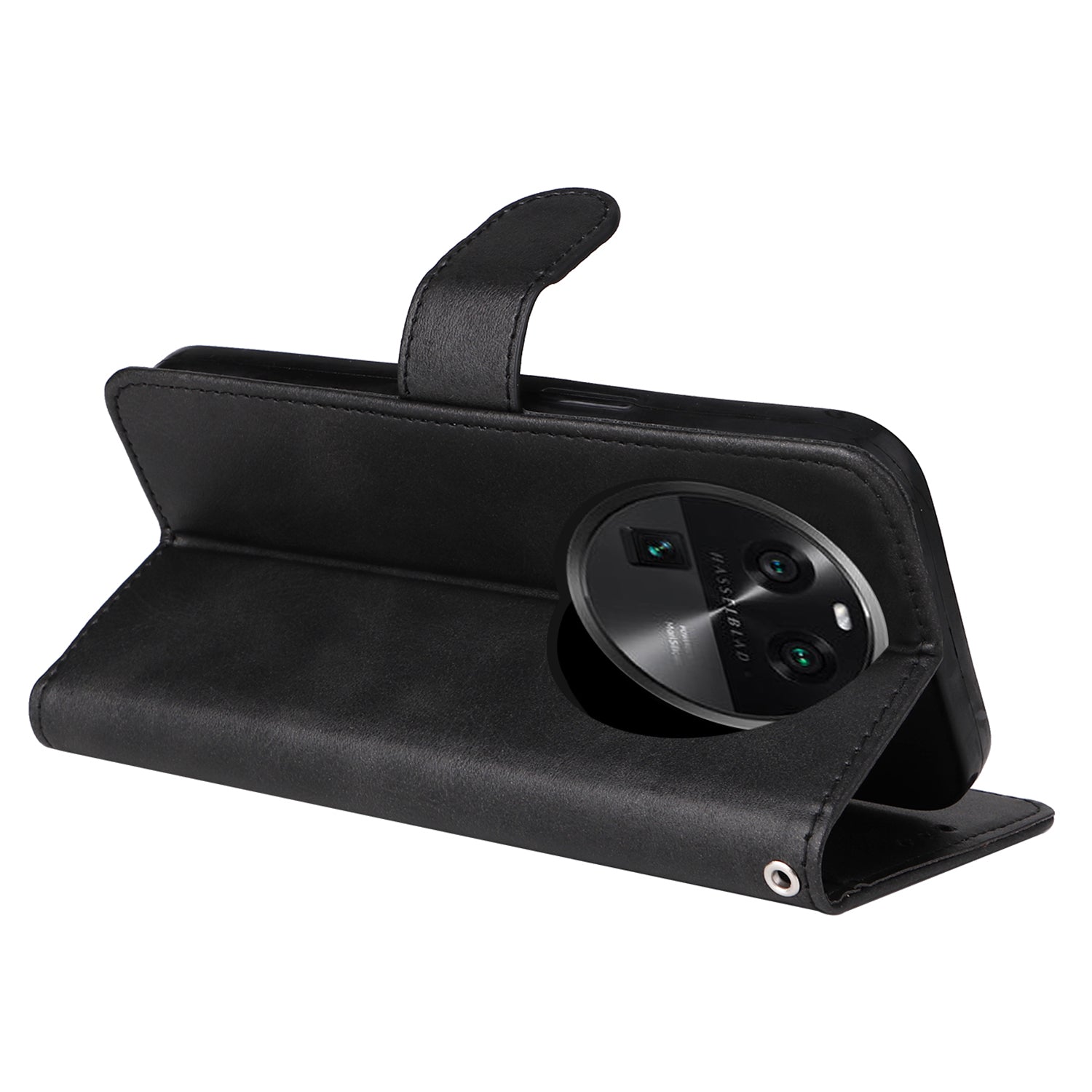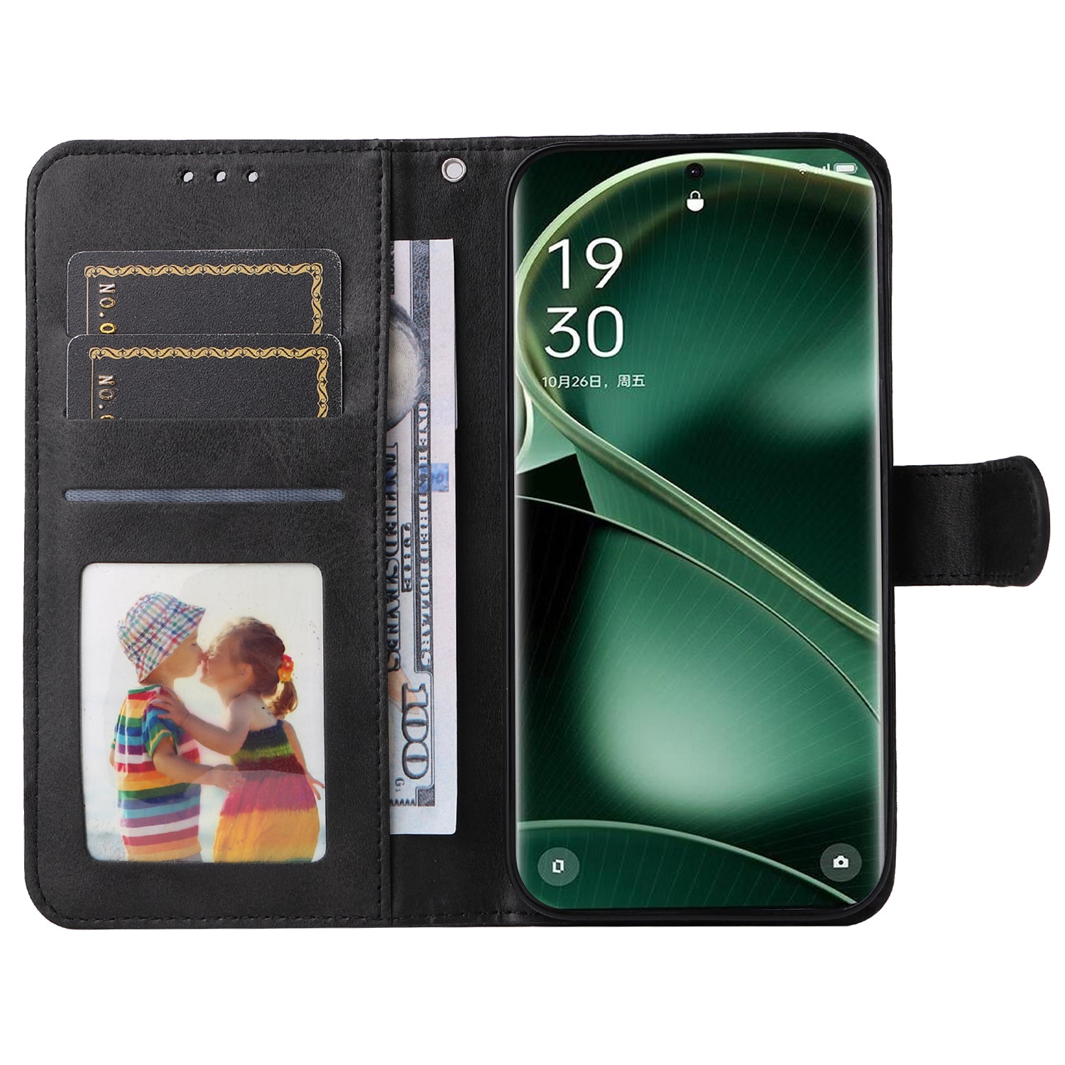 Shockproof Leather Case for Oppo Find X6 Pro Calf Texture Wallet Stand Cell Phone Cover with Strap