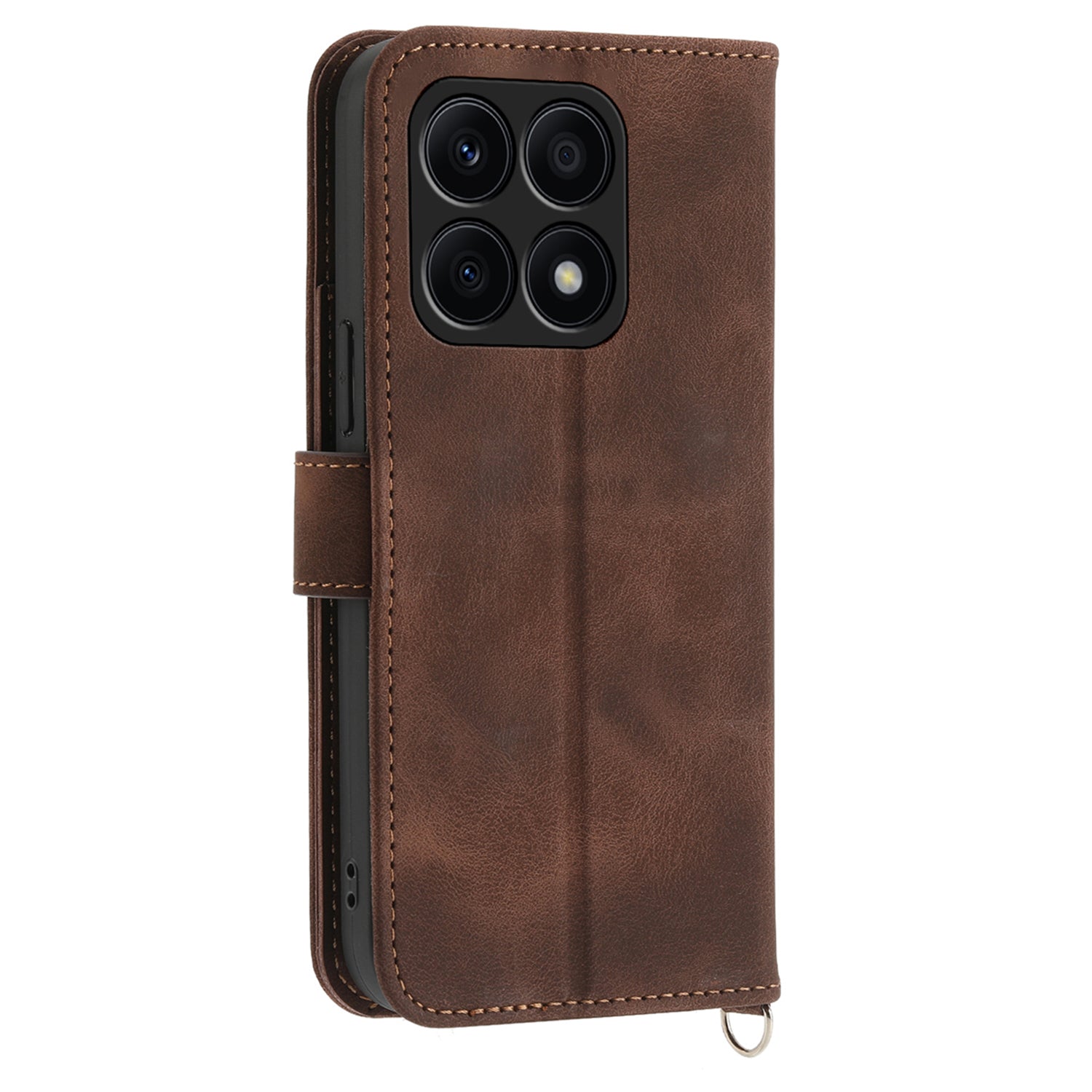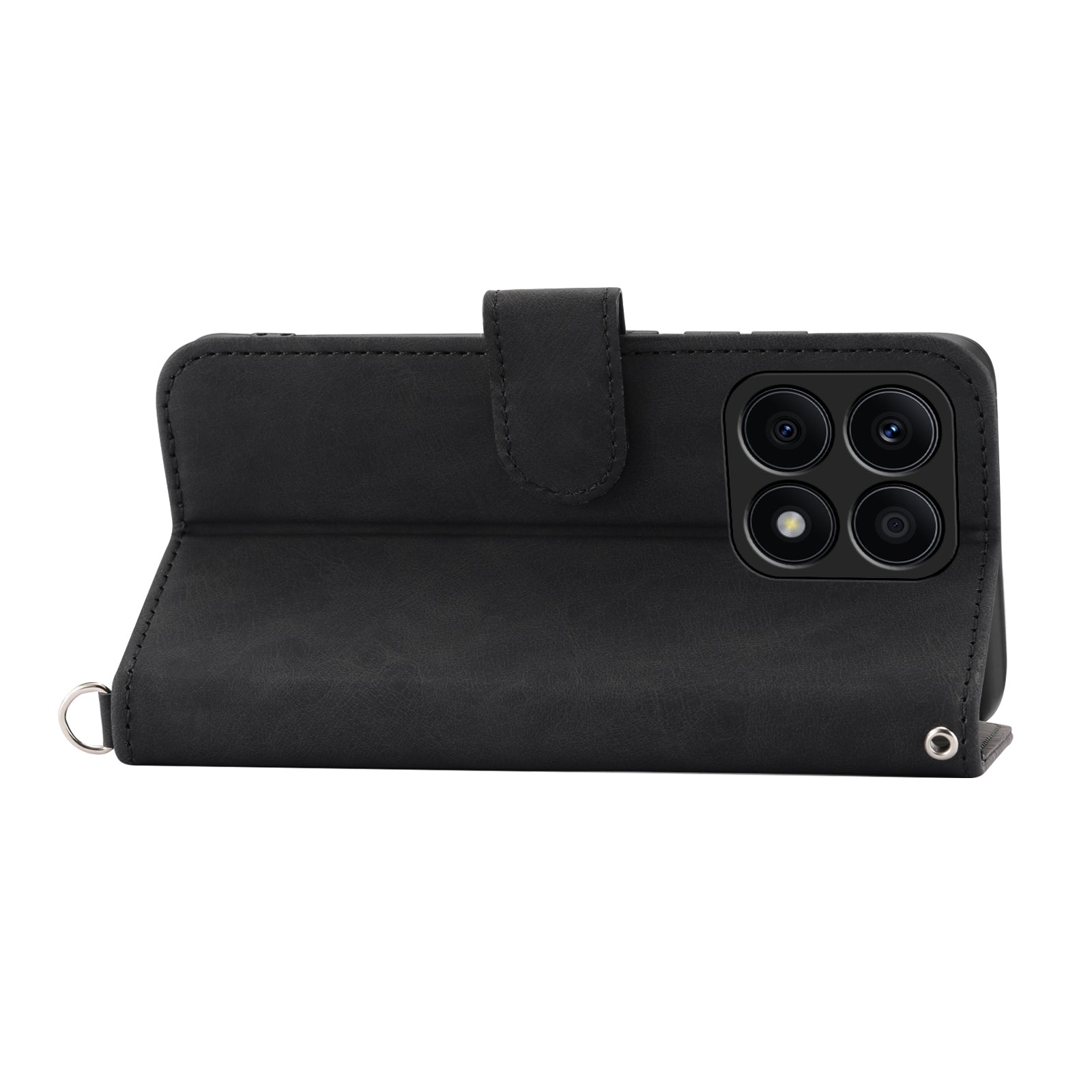 Shockproof Leather Cover for Honor X8a 4G Wallet Phone Case Imprinted Flower Skin-Touch Phone Shell with Strap
