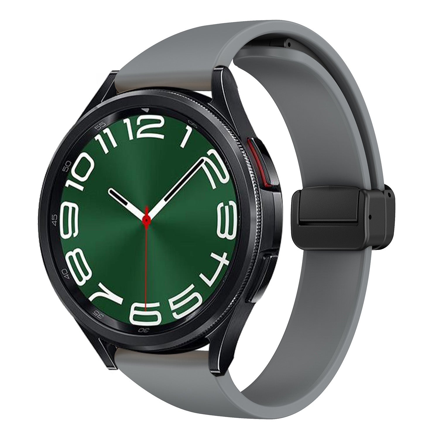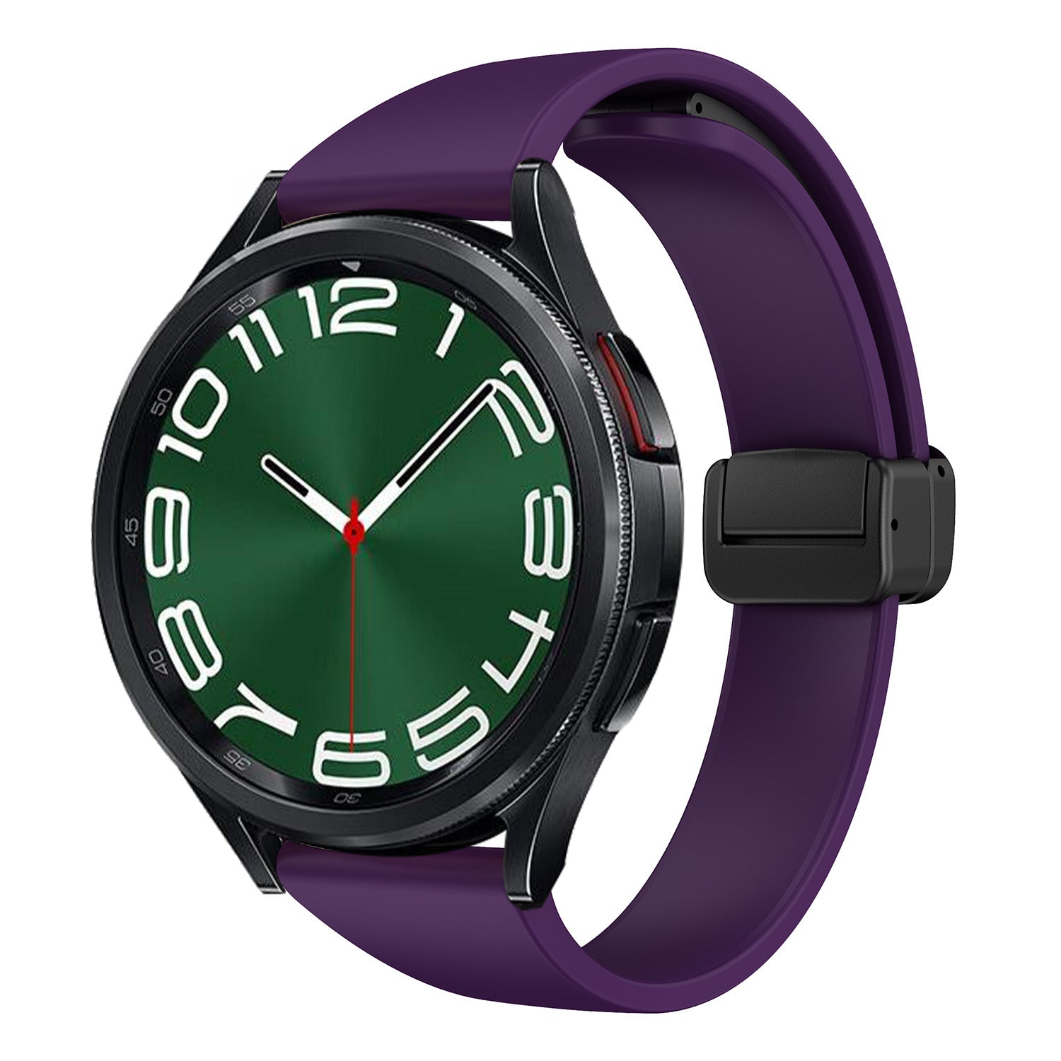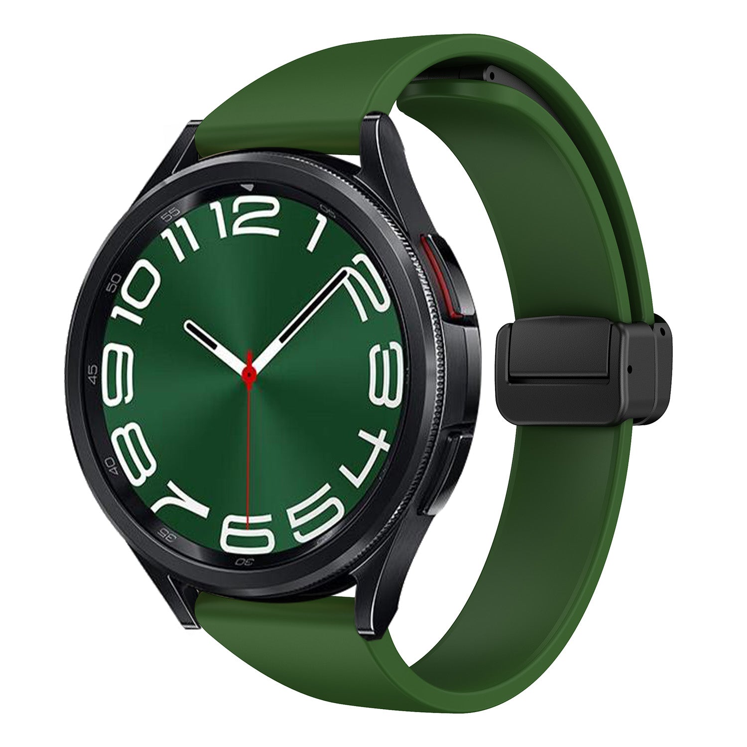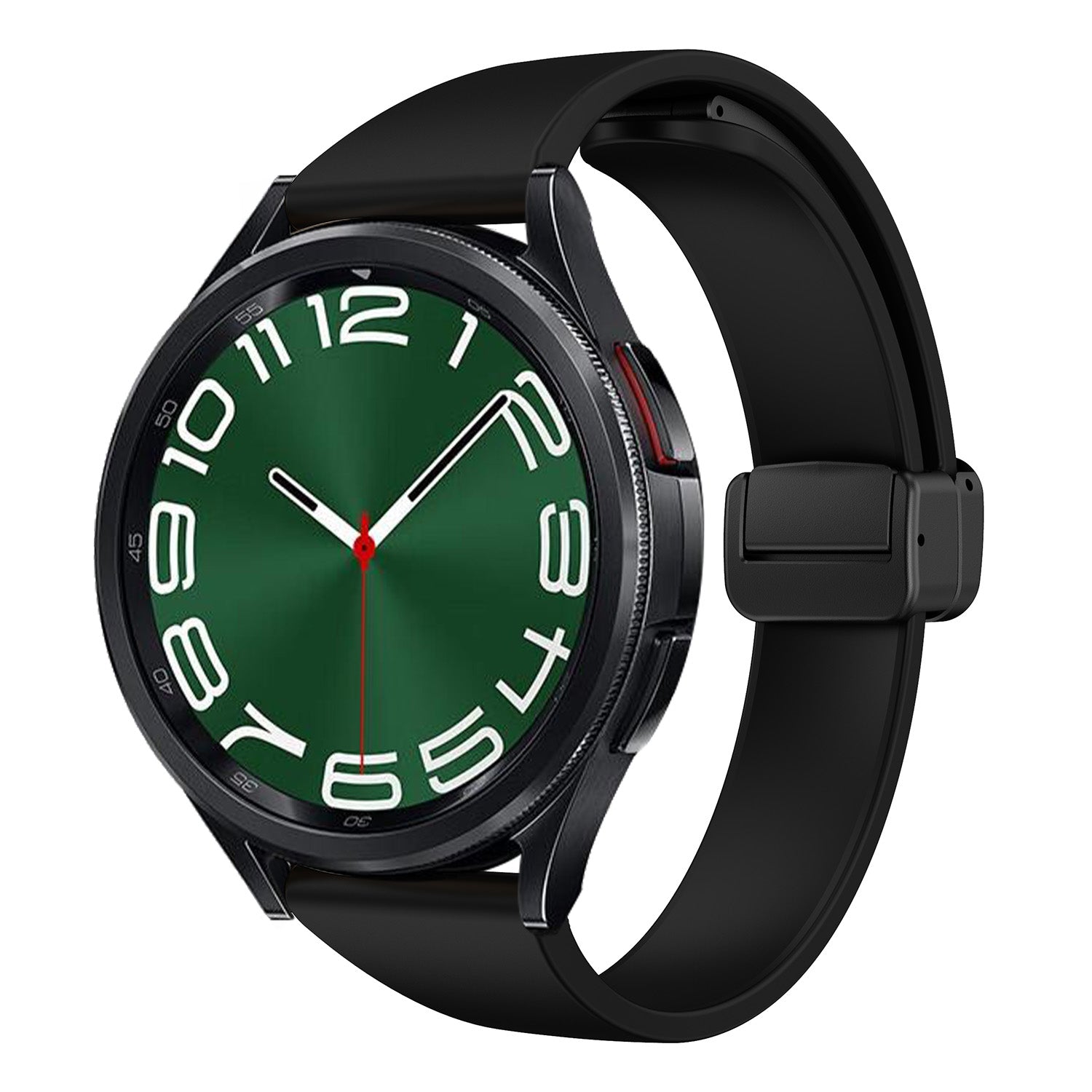 Silicone Bands for Samsung Galaxy Watch6 / Watch6 Classic / Watch 5 / Watch 5 Pro / Watch4 / Watch4 Classic , Black Magnetic Folding Buckle 20mm Strap