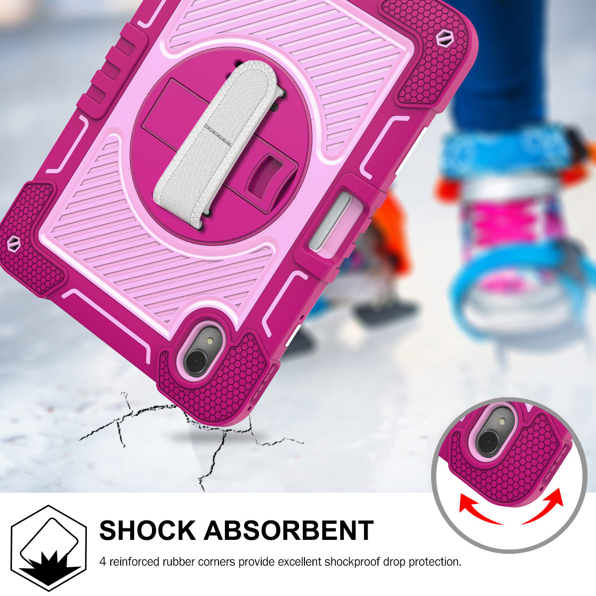 - Integrated 360-degree rotary kickstand with hand band frees your hands for landscape or portrait viewing