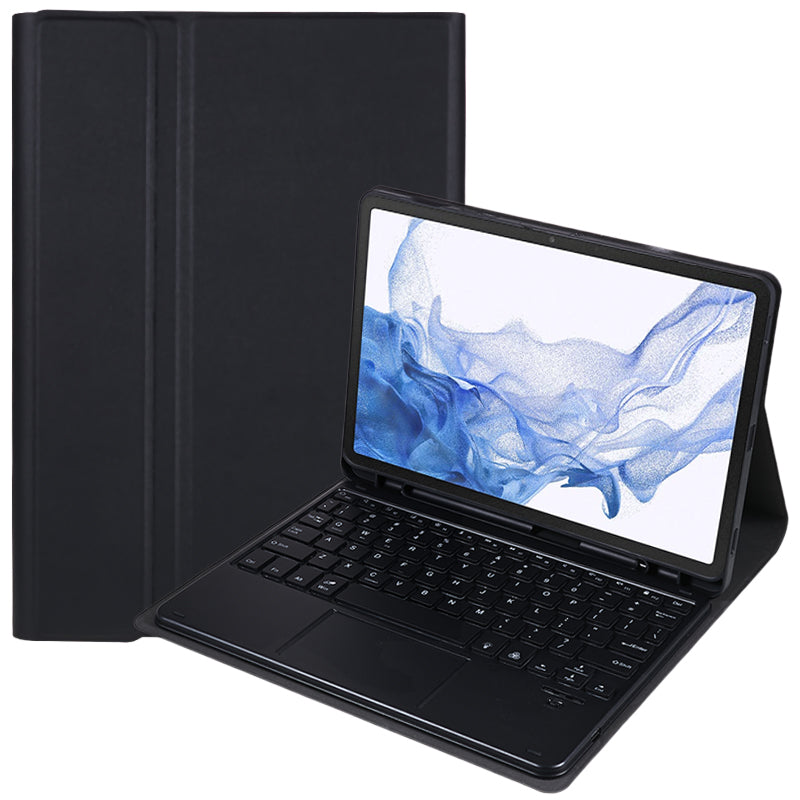 SK-T870D Tablet Case for Samsung Galaxy Tab S8 SM-X700, X706 / Tab S7 SM-T870, T875, T878 Stand PU Leather Cover + Bluetooth Backlit Keyboard with Touchpad