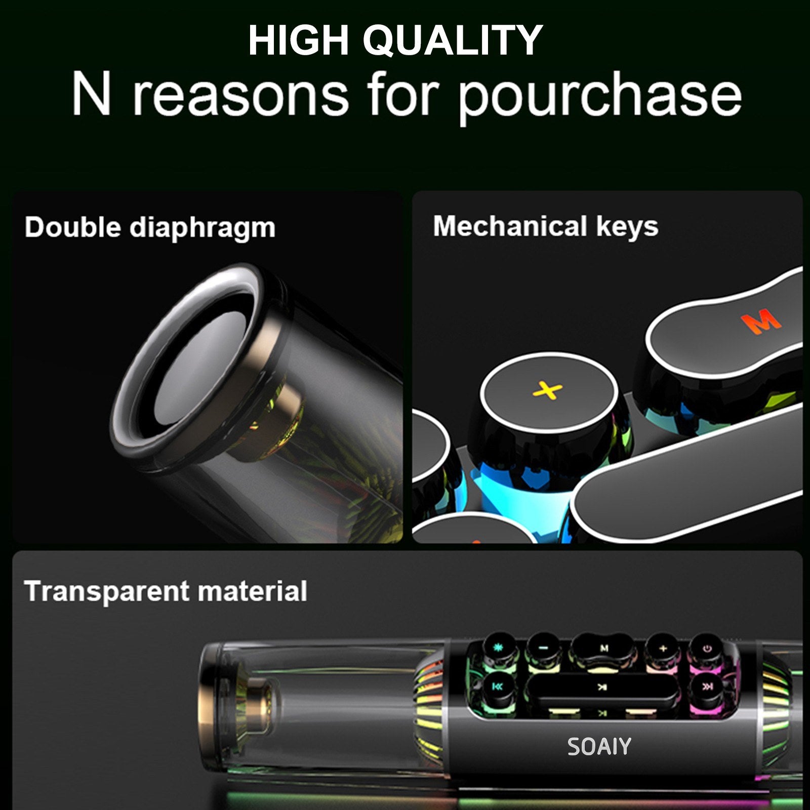 - High-quality ABS-made material, translucent speaker body, with 16 RGB lighting effects, lighting changes, enhance the background atmosphere