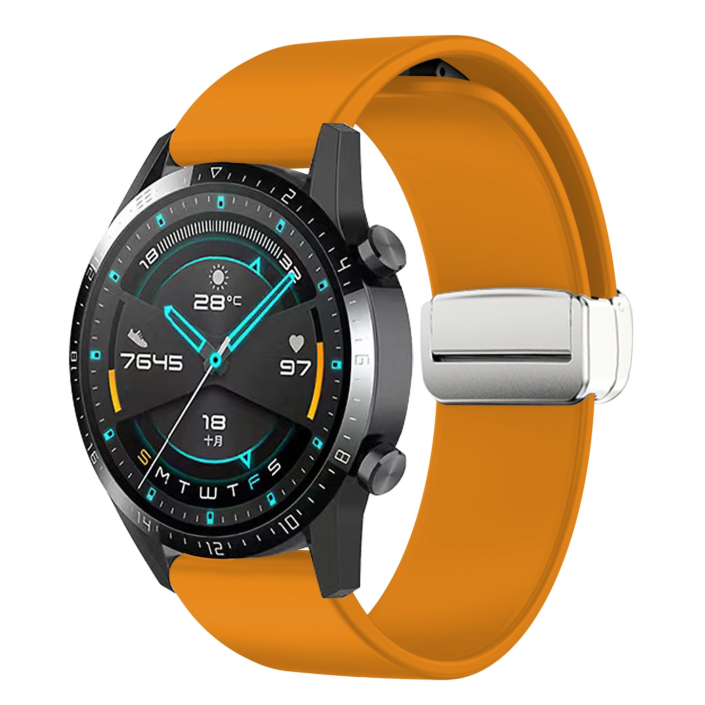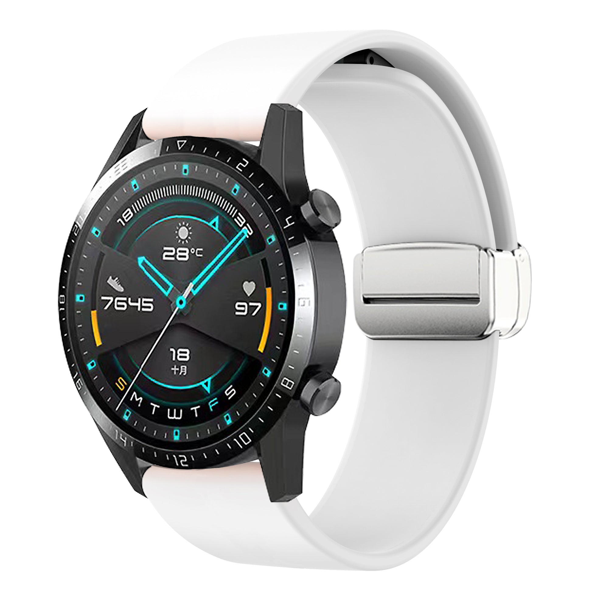 Sport Bands for Huawei Watch 4 / Watch 4 Pro / Watch 3 / Watch 3 Pro , Silicone 22mm Watch Strap with Silver Magnetic Folding Buckle