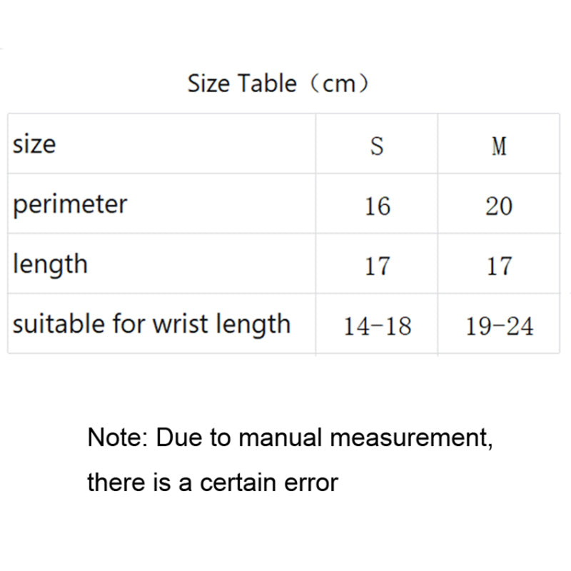 - For Wrist: 14-18/S; 19-24cm/M