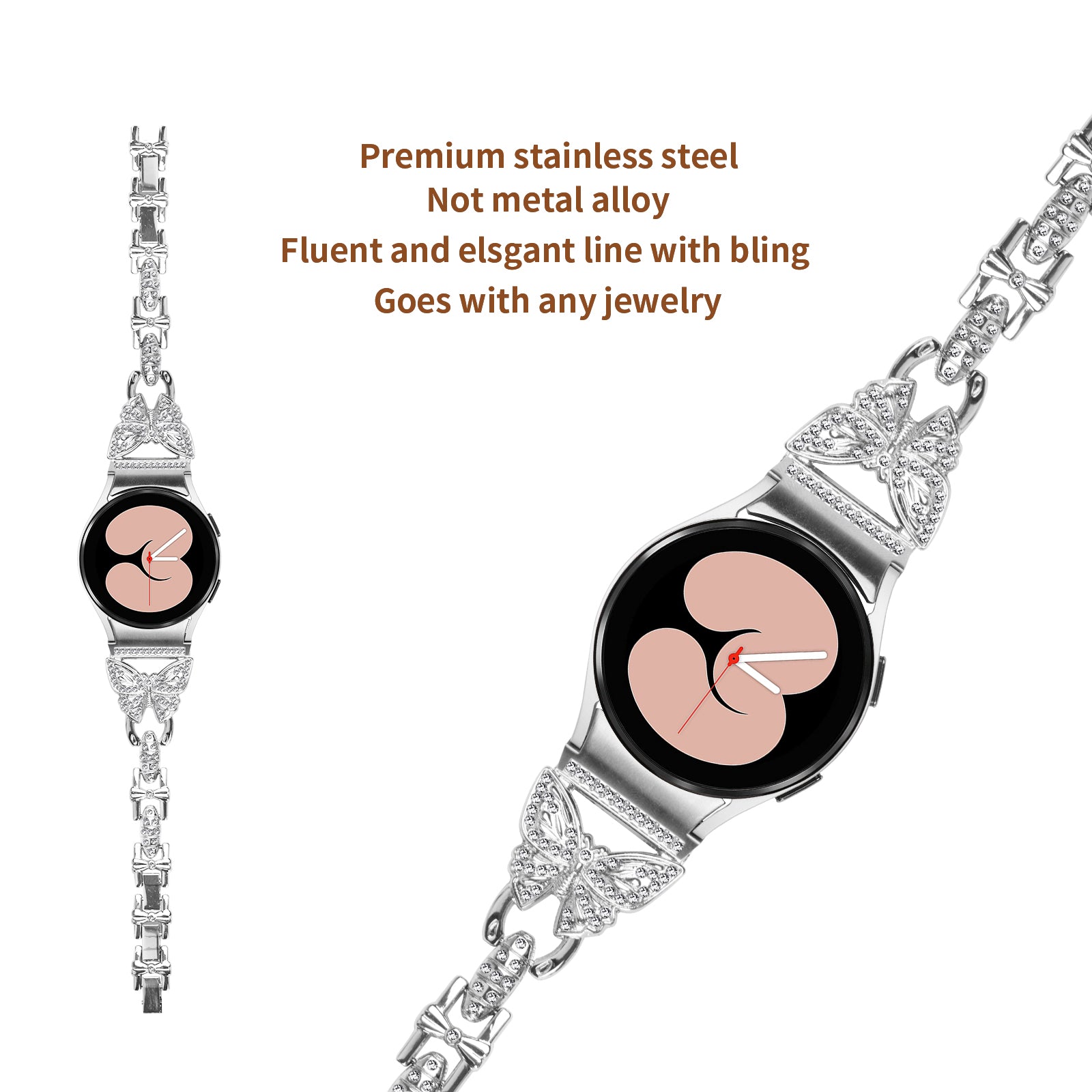 Stainless Steel Band for Samsung Galaxy Watch4 40mm 44mm / Watch5 40mm 44mm / Watch4 Classic 42mm 46mm , Rhinestone Decor 20mm Watch Strap with Connector