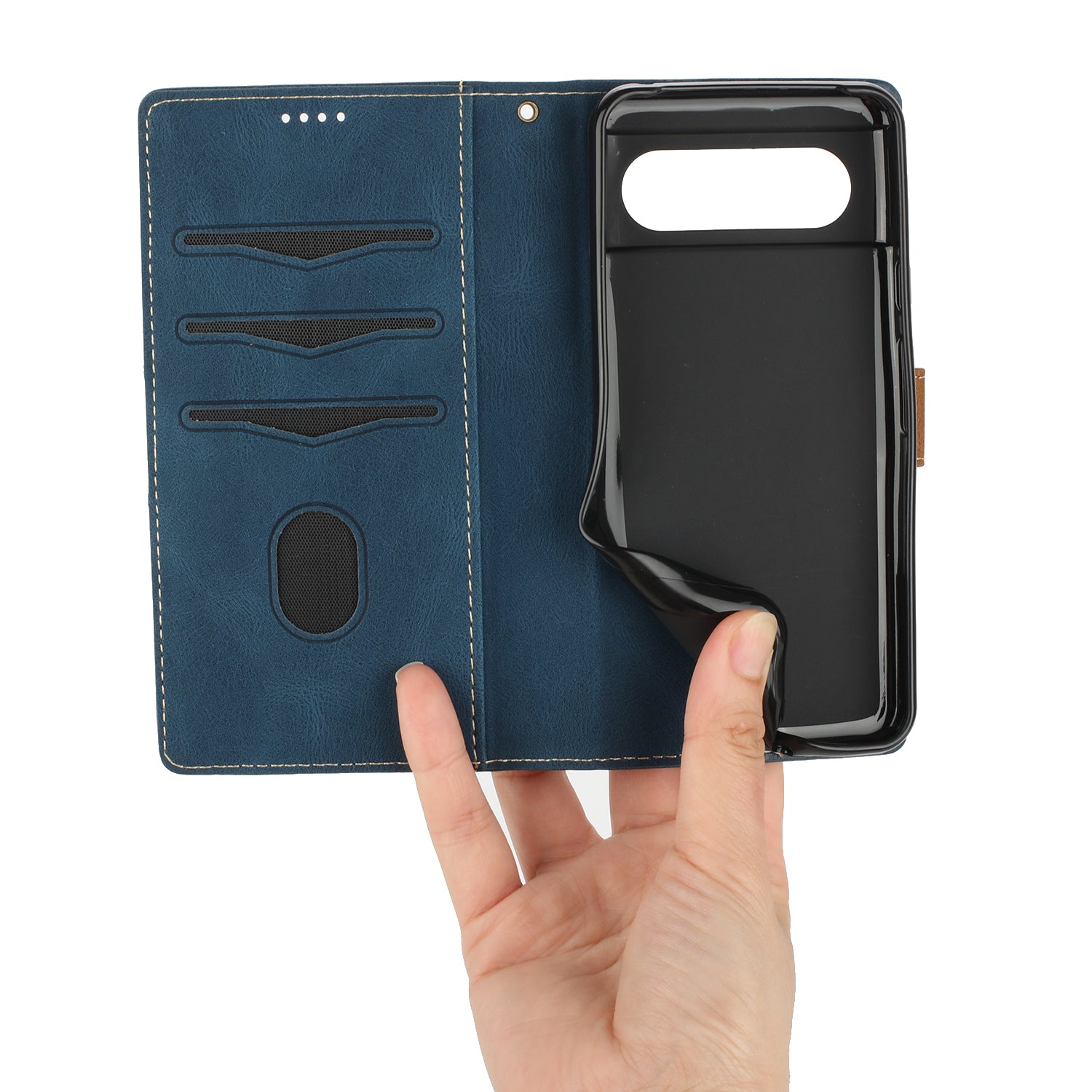 Stand Phone Case for Google Pixel 8 , PU Leather Cover Magnetic Wallet Grid Splicing Phone Shell with Strap