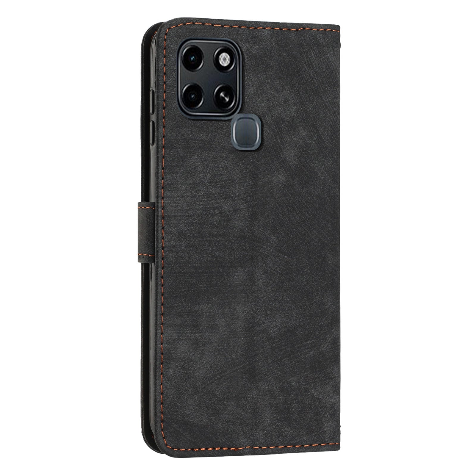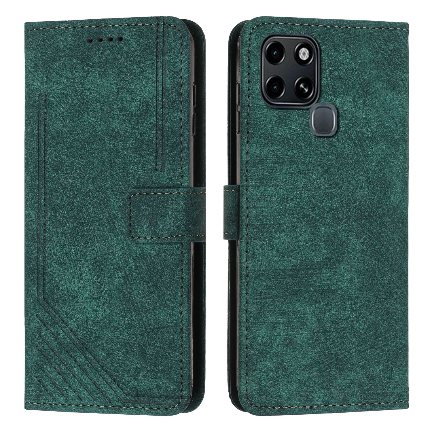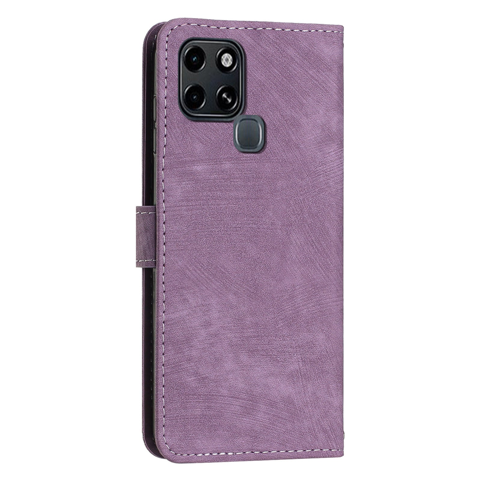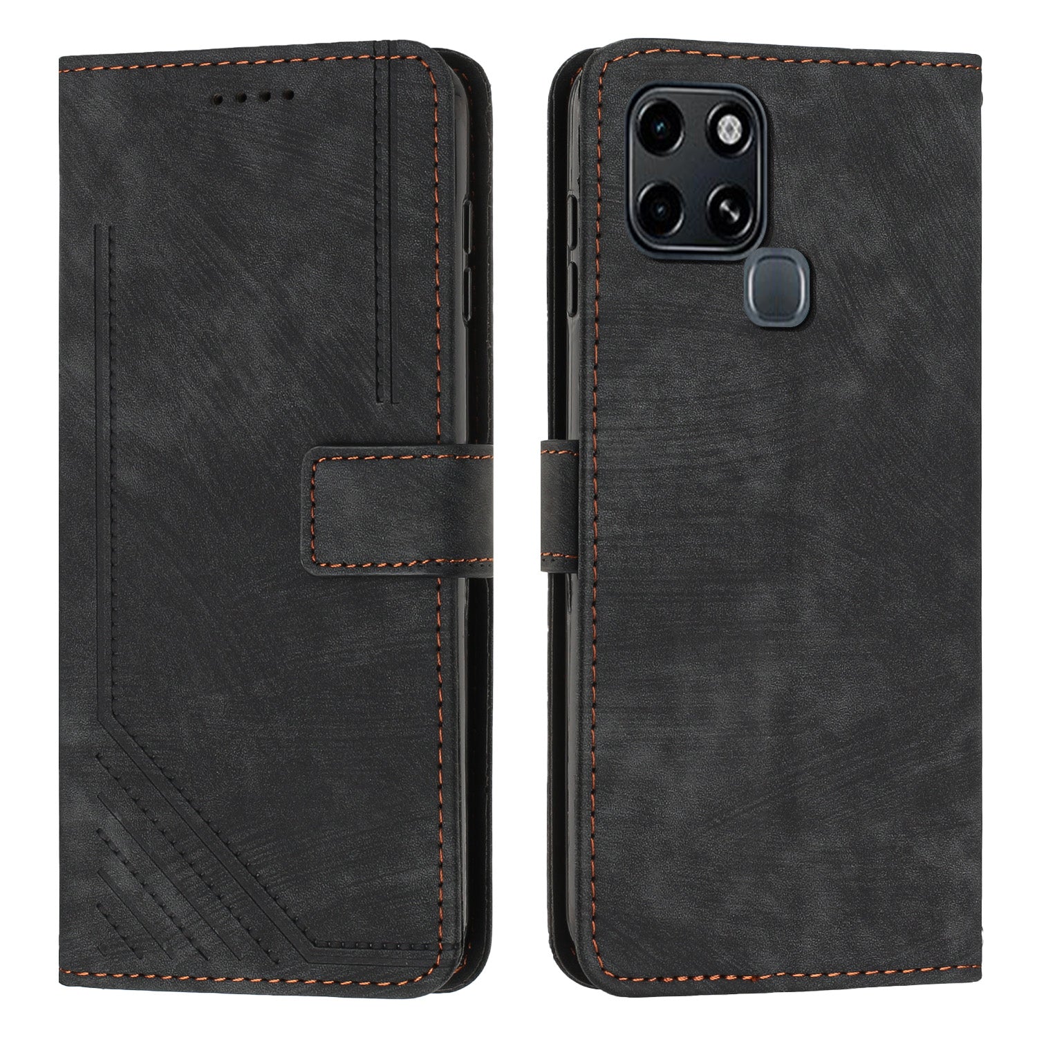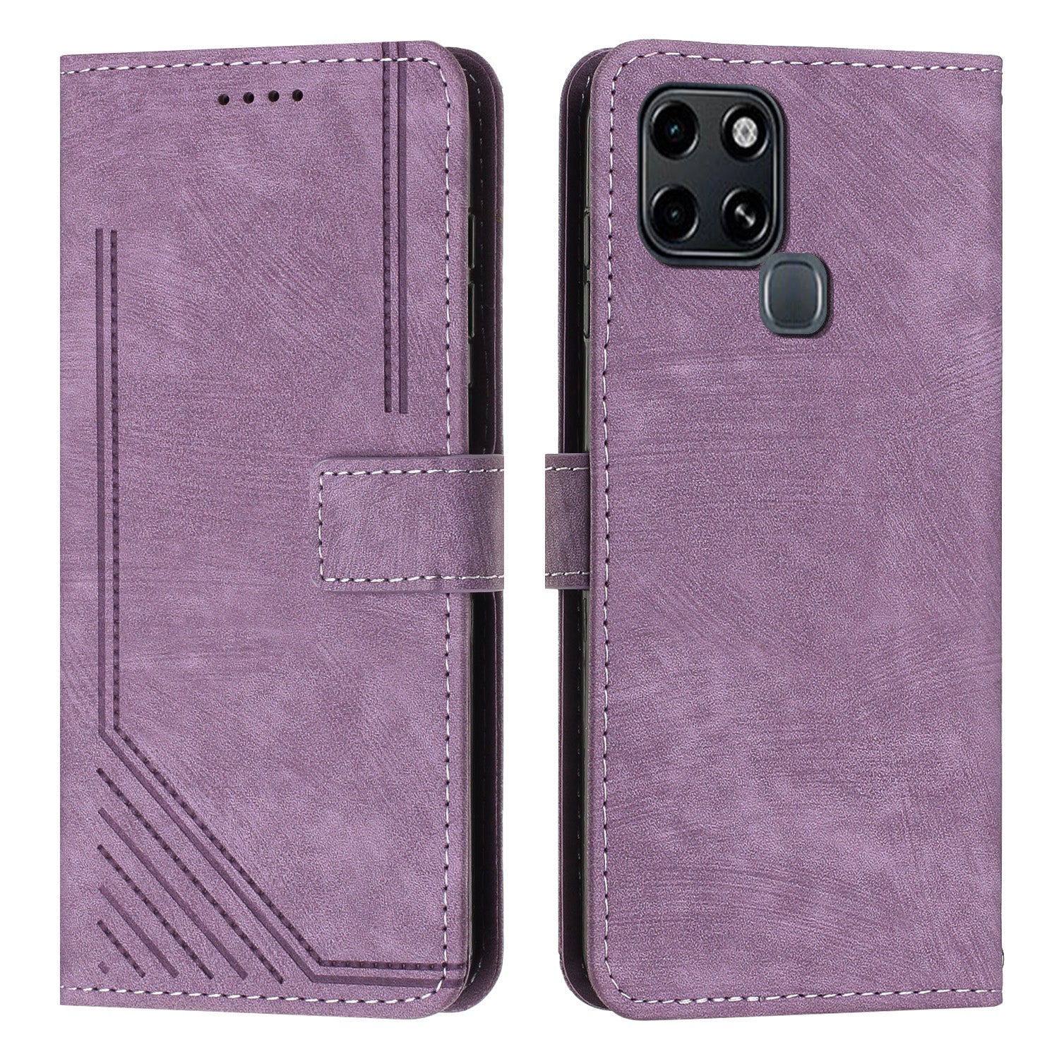 Stand Phone Shell for Infinix Smart 6 , Skin-touch PU Leather Wallet Stand Lines Imprinted Cover with Straps