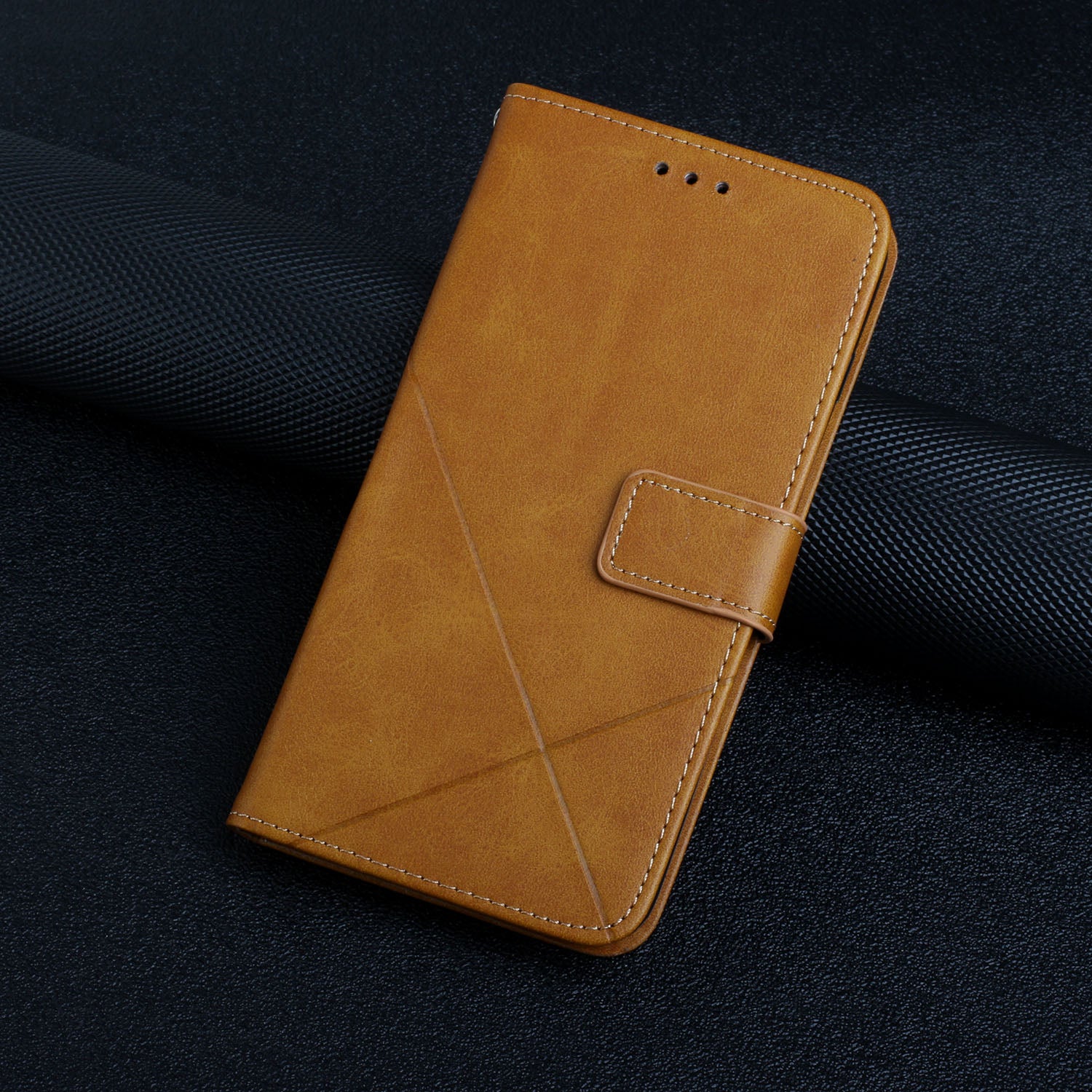 Stripe Leather Phone Case Solid Color Magnetic Clasp Shockproof Wallet Phone Shell for Xiaomi Redmi Note 10 Pro 5G (China)/Poco X3 GT 5G - Dark Brown