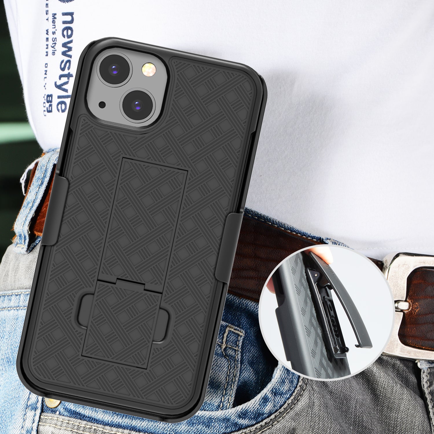 - 180-degree swivel clip, can be clipped on waistband or belt