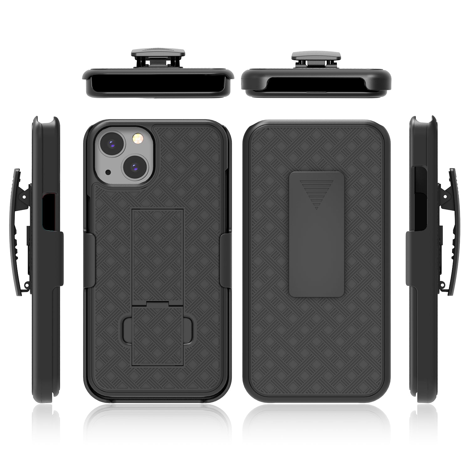 Stylish Woven Texture Scratch-Resistant Swivel Belt Clip Kickstand PC + TPU Hybrid Case for iPhone 13 6.1 inch