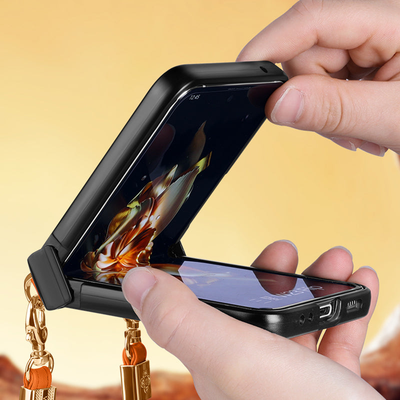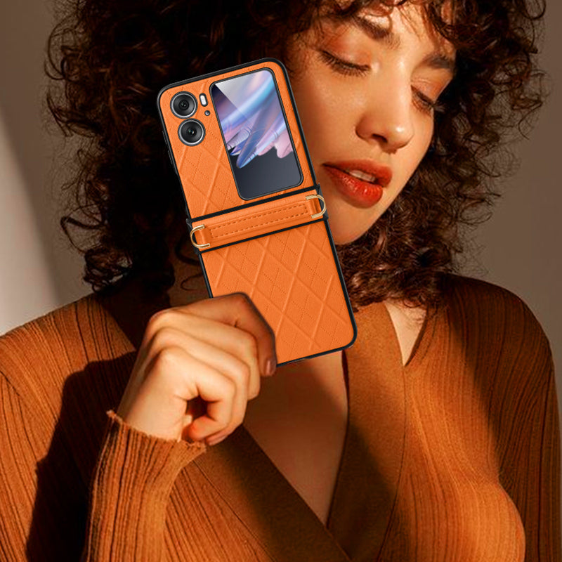 SULADA For Oppo Find N2 Flip 5G Folding Phone Case Imprinted Leather Coated PC Cover with Shoulder Strap