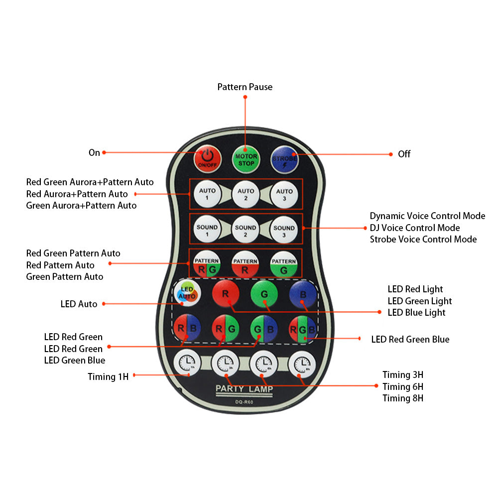 - Light source: 1Pc 3-color LED lamp beads + 2Pcs Dream Northern Lights + red and green laser.