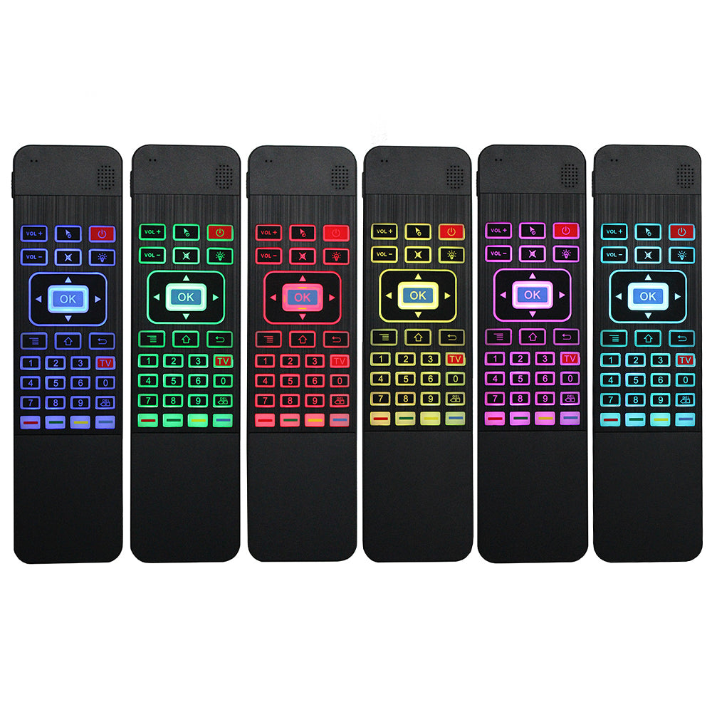 - Support multifunctional use: gyroscope + QWERTY keyboard + 5-key IR learning + 7 color backlight