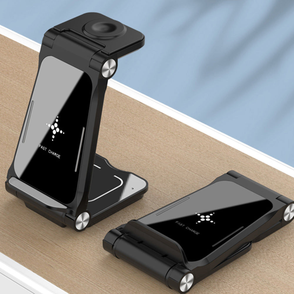 T8 Desktop Folding Wireless Charger 3-in-1 Portable Charging Stand 15W Fast Charging Mobile Phone Wireless Charger