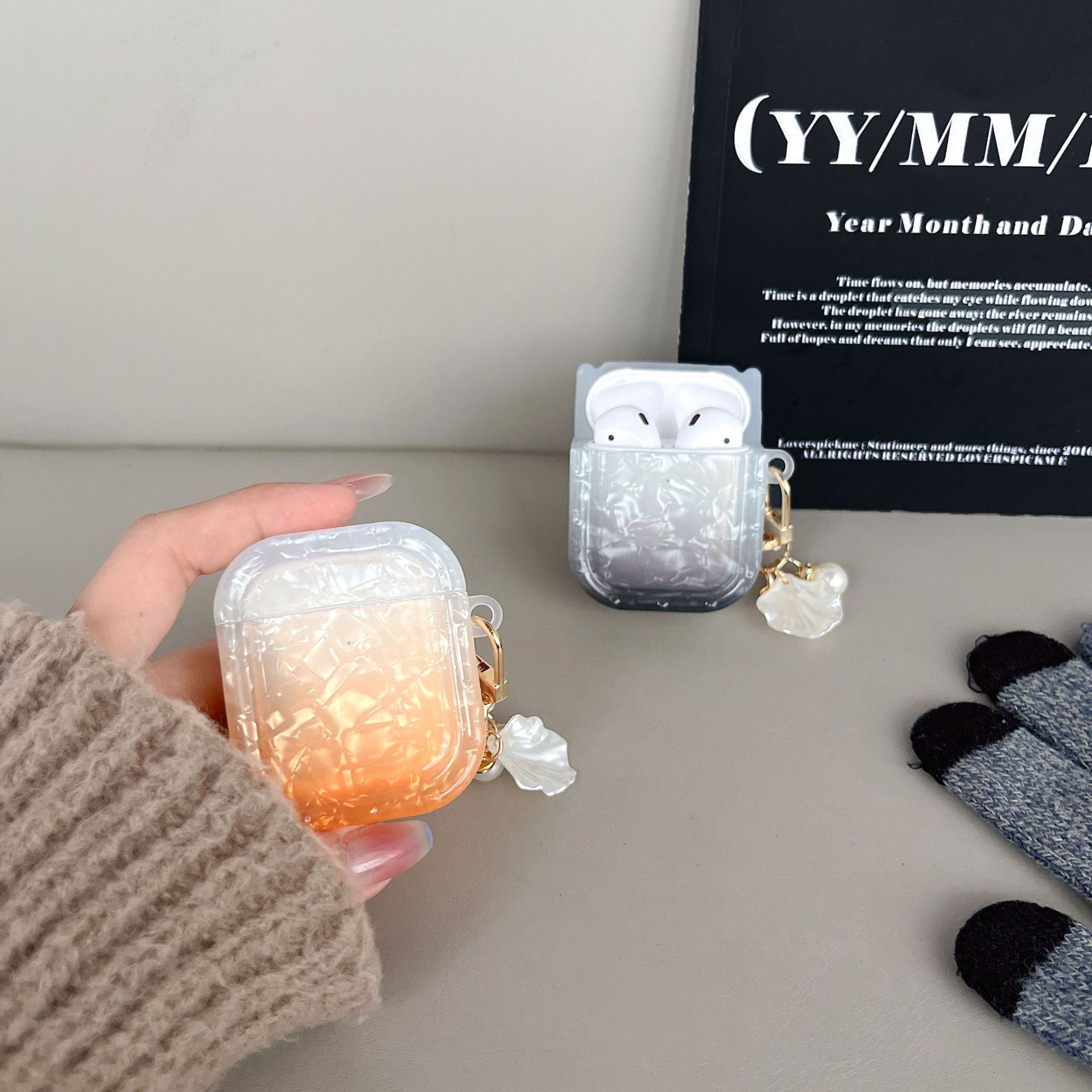 TPU Cover for Apple AirPods with Charging Case (2016) / (2019) / AirPods with Wireless Charging Case (2019) , Gradient Shell Grain Square Earphone Case with Pendant