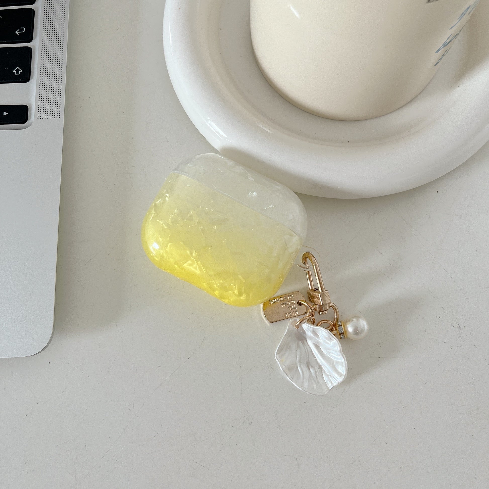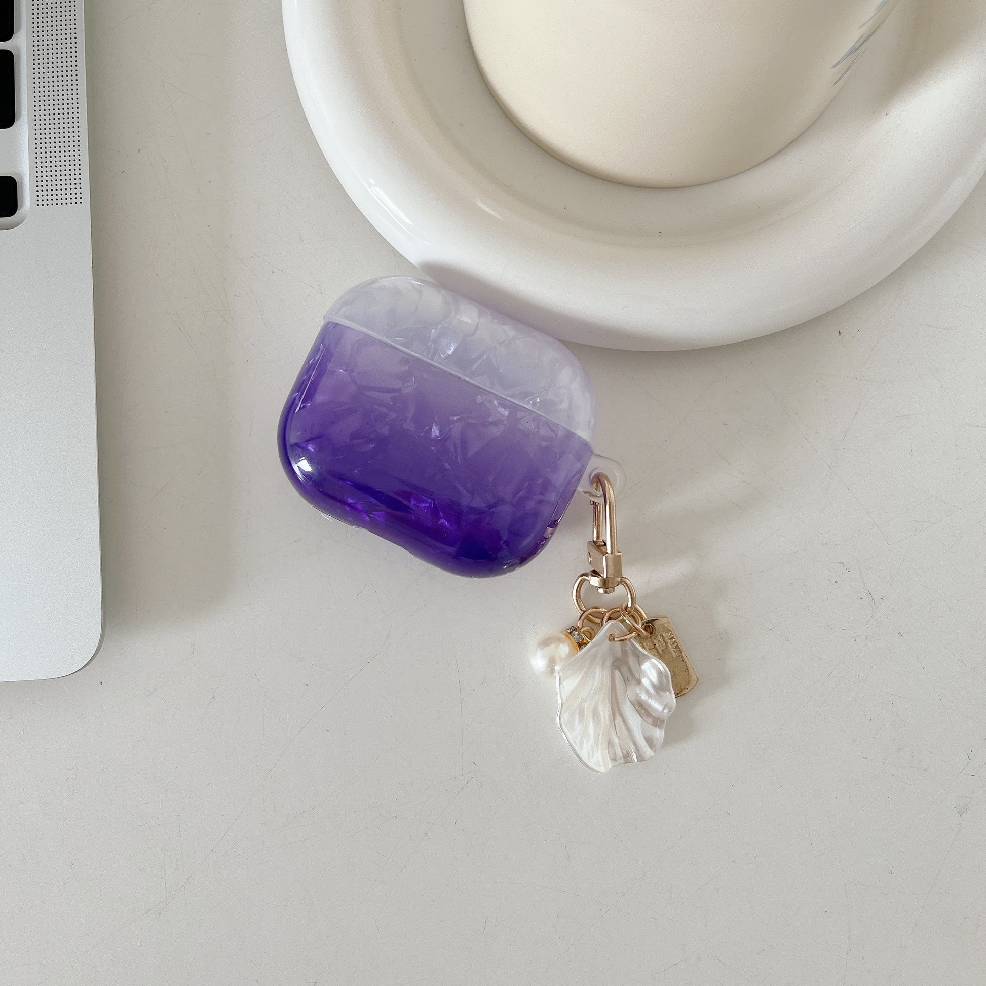 TPU Earphone Case for Apple AirPods 3 , Gradient Shell Grain Protective Carrying Cover with Shell Shape Pendant