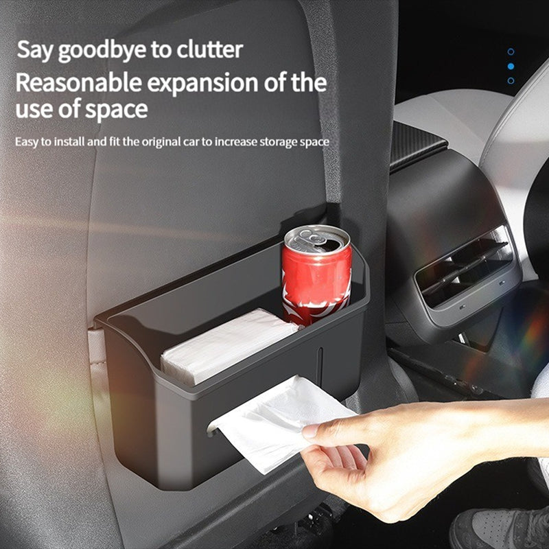TSL261 Car Front Backrest Storage Box for Tesla Model Y / Model 3 17-22 TPE Under-seat Organizer Case