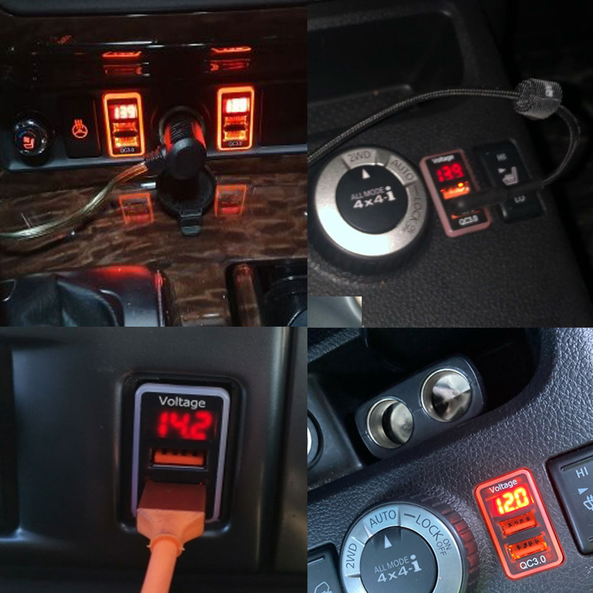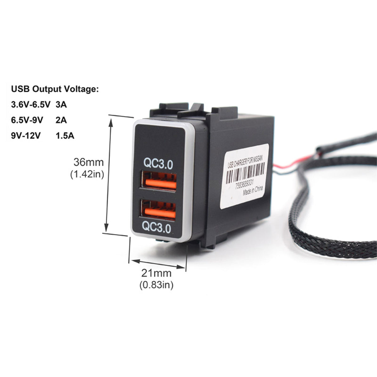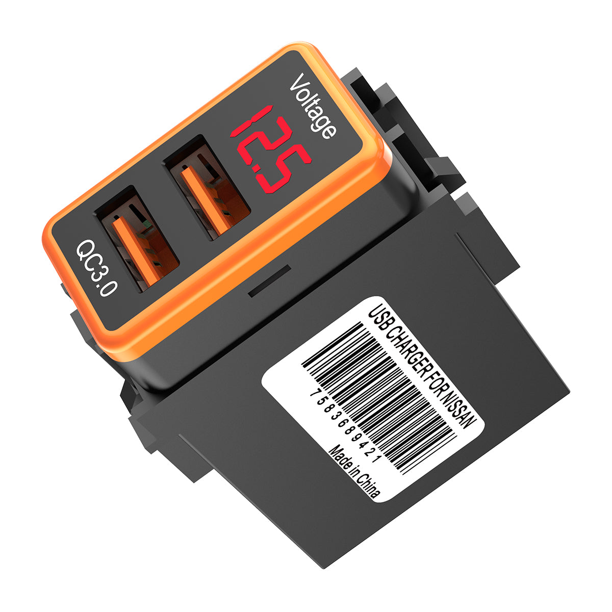 USB QC3.0 Dual Port Voltage Display Car Charger Socket Fast Phone Charging Adapter for Nissan