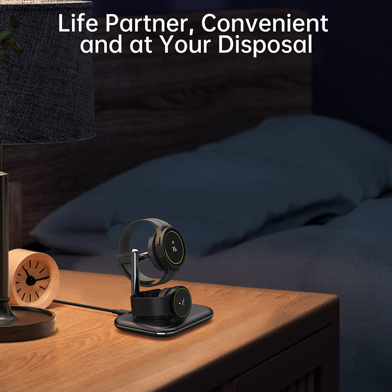 V19S Desk Wireless Charger for Samsung Galaxy Watch 5 Pro 45mm , 2-in-1 Magnetic Charging Station Folding Charging Pad