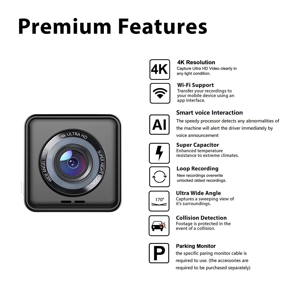 V52 True 4K UHD Driving Recorder 2" IPS Screen WiFi Recorder with Loop Recording Smart Voice Interaction Support 3840x2160P