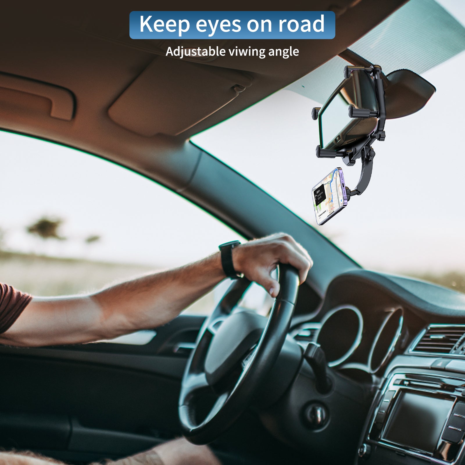 - Fixed to the rearview mirror by a spring clamp, the four claws connected to the rearview mirror can be expanded and contracted in length and width